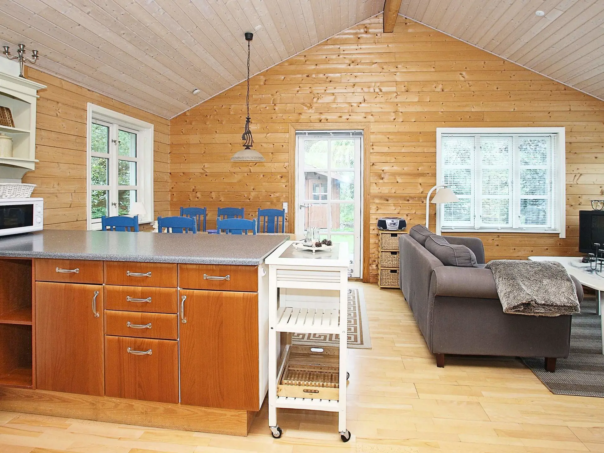 Gemütliches Ferienhaus auf einem Naturgrundstück mit Wiese, Bäumen und einigen Spielgeräten für Kinder. Zudem schöne Holzveranda mit mehreren Sitzgelegenheiten. Familienfreundliche Einrichtung mit Kinderbett und Hochstuhl. Zudem Sauna sowie technische Annehmlichkeiten wie WLAN, Parabol, Waschmaschine und Trockner im Haus. Im großen Bad steht auch eine Whirlwanne für 2 Personen bereit. Die Kücheneinrichtung ist älter.