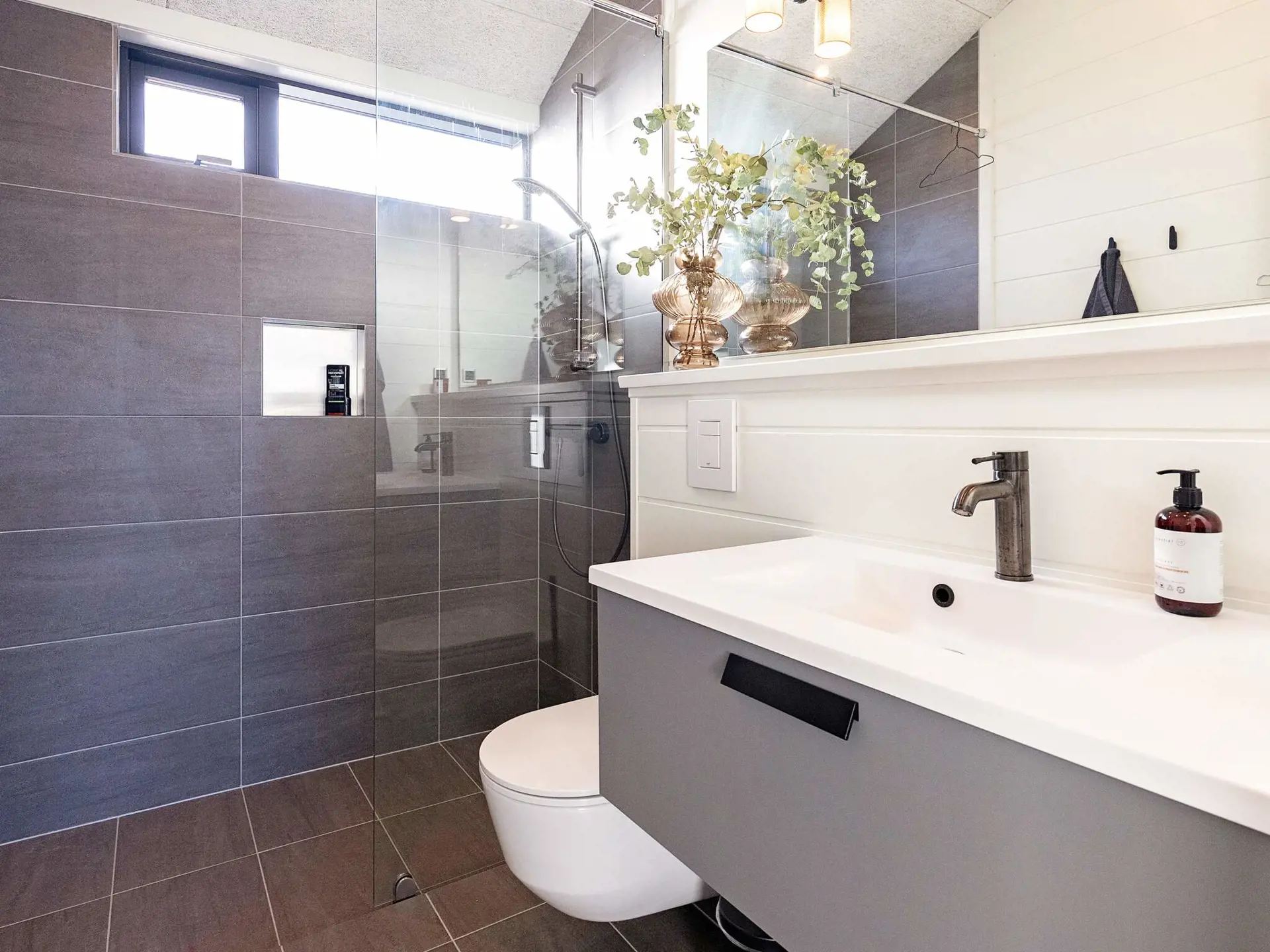 Der Stil ist modern, gemütlich und funktional, mit vier großen, hellen Schlafzimmern mit guten Betten und viel Stauraum. Der offene Eingangsbereich verfügt über Waschmaschine und Trockner. Darüber hinaus gibt es zwei schöne Badezimmer und eine Außendusche.