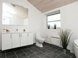 Modernes Ferienhaus, gut isoliert und im dänischen Ferienhausstil eingerichtet. Der Lichteinfall ist optimal und die Möbel hochwertig. Küchen-Wohnbereich, drei Schlafzimmer und ein Bad mit angenehmer Fußbodenheizung und Whirlpool erwarten Sie. Die Terrasse ist teilweise überdacht und das große Grundstück hat eine Rasenfläche, die sich zum Spielen mit den Kindern oder zum Sonnenbaden anbietet.