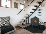 Im Erdgeschoss befinden sich Küche, Essbereich und Wohnzimmer in offener Verbindung. In der Küche gibt es ein Induktionsherd mit zwei Kochfeldern. Das Haus ist einfach und günstig zu heizen, dafür stehen eine klimafreundliche Wärmepumpe sowie ein gemütlicher Holzofen bereit.