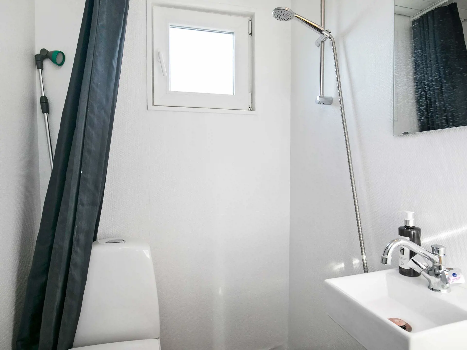 Um das ganze Haus herum gibt es einen großen Terrassenbereich. An der einen Seite der Terrasse lässt sich das Leben im Ferienhausgebiet verfolgen und auf der anderen Seite herrscht Ruhe. Es gibt auch einen Gasgrill. In Verbindung mit dem Haus findet man einen großen Shelter für bis zu vier Personen, die hier eine Nacht im Freien verbringen können.
