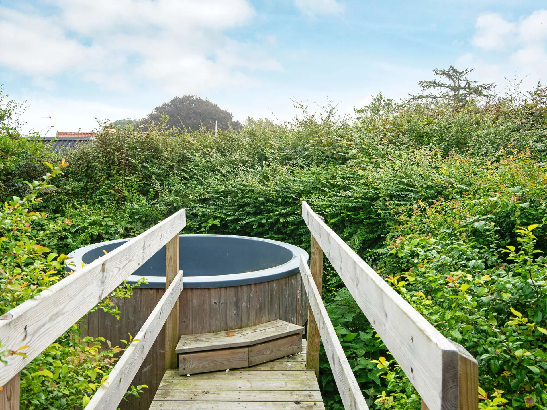 Im Außenbereich findet man eine Infrarotsauna, die entspannend und angenehm ist. Im Garten gibt es außerdem einen Badezuber für max. 6 Personen, in dem sich die Stunden unbeschwert genießen lassen.