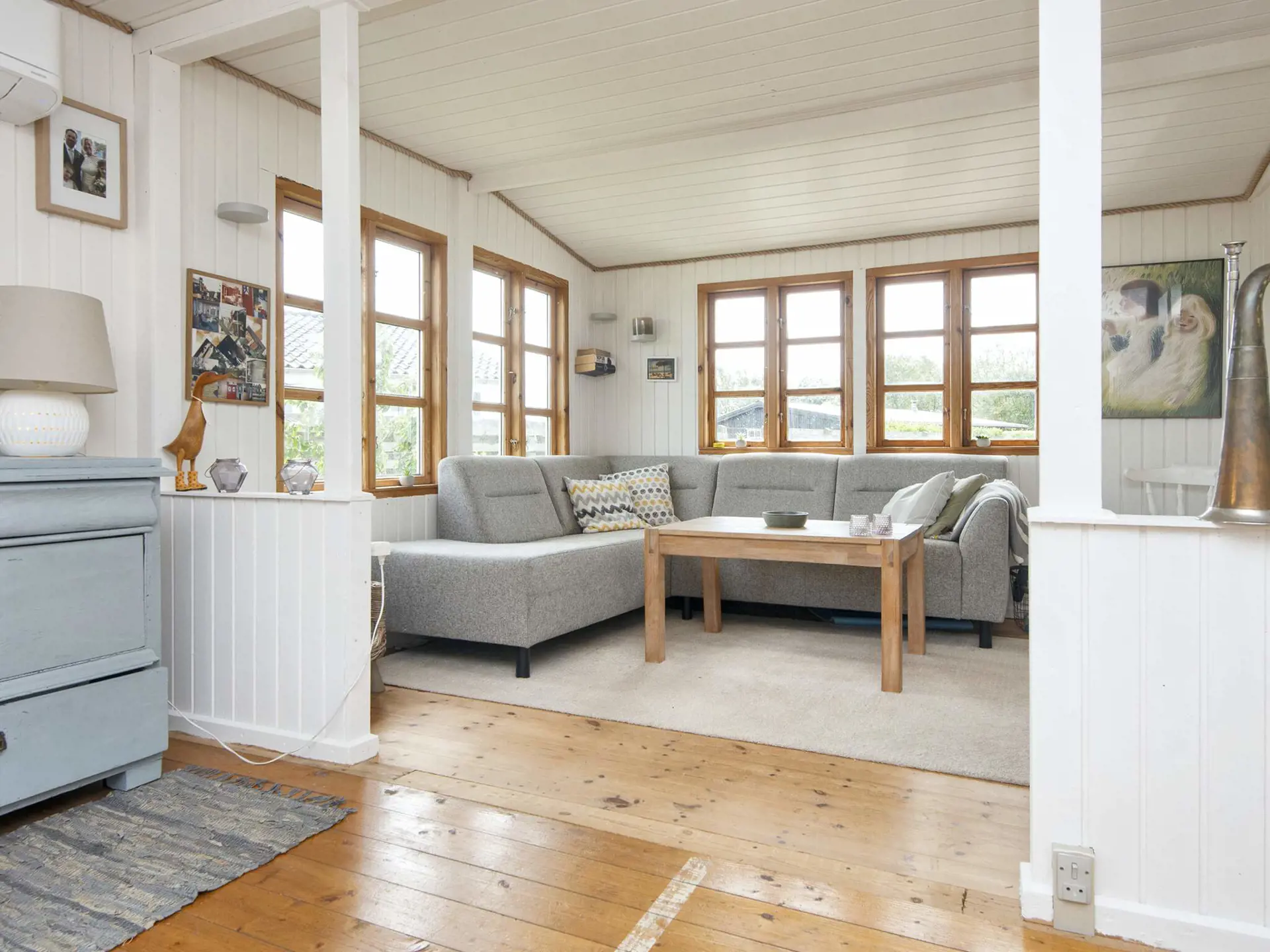 Abgerundet wird der Innenraum durch ein gemütliches Wohnzimmer mit typischem Sommerhaus-Feeling. Das Wohnzimmer ist offen mit einer gut ausgestatteten Küche verbunden, in der alles vorhanden ist, was Sie zum Zubereiten köstlicher Mahlzeiten benötigen.