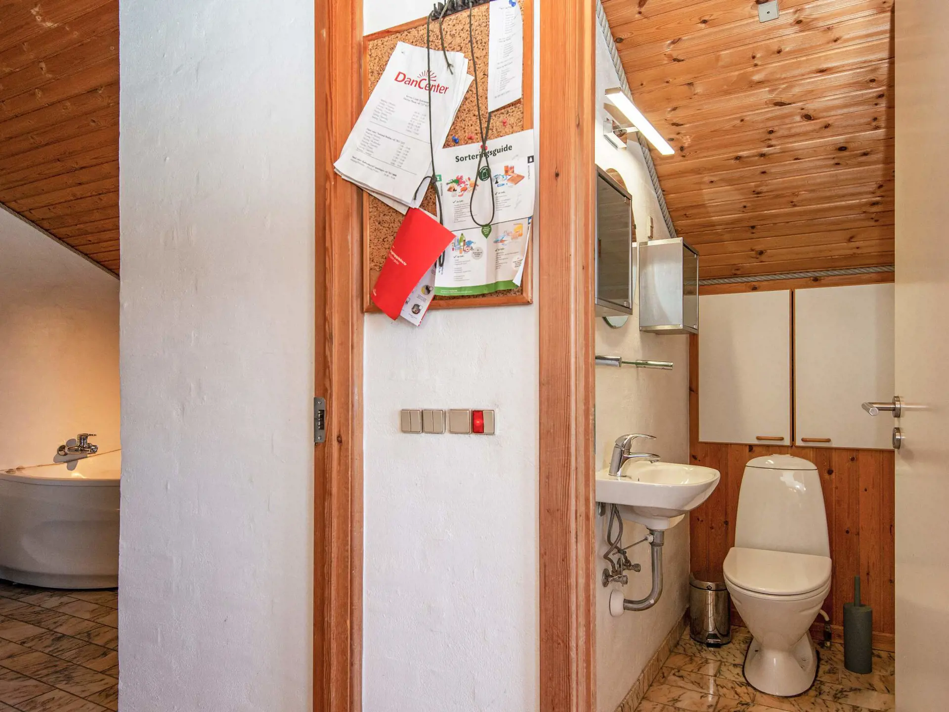 Zum Ferienhaus gehört auch ein großes Bad mit 2-Pers. Whirlpool, Sauna und Fußbodenheizung, sodass Sie hier herrlich entspannen können. Außer dem großen Bad gibt es eine Gästetoilette mit Fußbodenheizung. Im Wohnzimmer verbreitet ein Holzofen behagliche Wärme an kühleren Tagen. Gratis WLAN-Internet ist vorhanden, Ihren eigenen Computer müssen Sie mitbringen. Im Wohnzimmer können Sie bei schlechterem Wetter Videos oder DVDs sehen. Praktischer Waschtrockner (ein Gerät) im Haus.