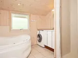 Helles Ferienhaus am Ende einer Sackgasse, auf einem ungestörten, umzäunten Gartengrundstück. Drei SZ und ein Alkoven im Wohnzimmer. Das eine der beiden Bäder verfügt über Whirlpool und Sauna - ideal zum Entspannen nach einem aktiven Tag im Freien. Pøt Strandby ist wegen seiner Natur, den Pfaden und des Wassers sehr beliebt.