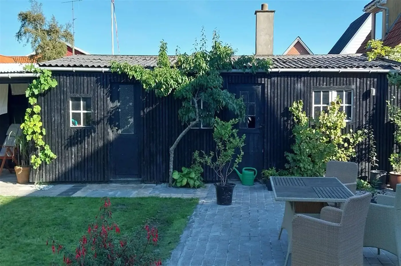 Das Ferienhaus liegt auf einem ungestörten Grundstück mit Terrasse. Von hier aus hast du gute Möglichkeiten für Spaziergänge mit dem Hund im Gebiet Bangsbo.