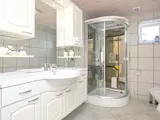 Großes Bad mit Dampfdusche sowie große Küche. Von der Küche aus gelangen Sie in ein weiteres, großes Schlafzimmer mit Doppelbett und Schlafcouch sowie einem TV. Von diesem Zimmer aus haben Sie Zugang zu einem großen Badezimmer mit Whirlpool und Dampfdusche. In den Doppelzimmern, der Küche und dem Wohnraum befinden sich je ein TV.