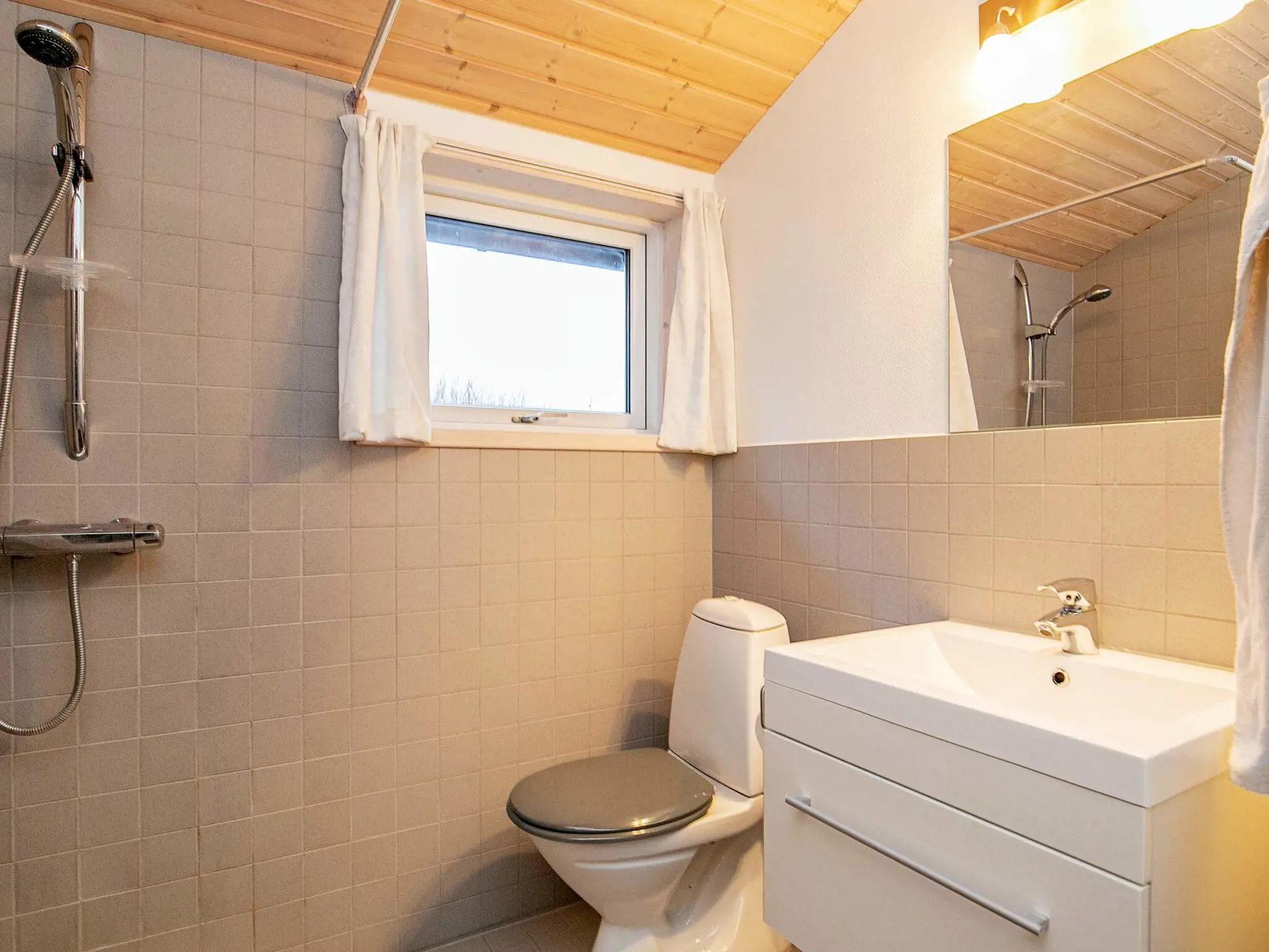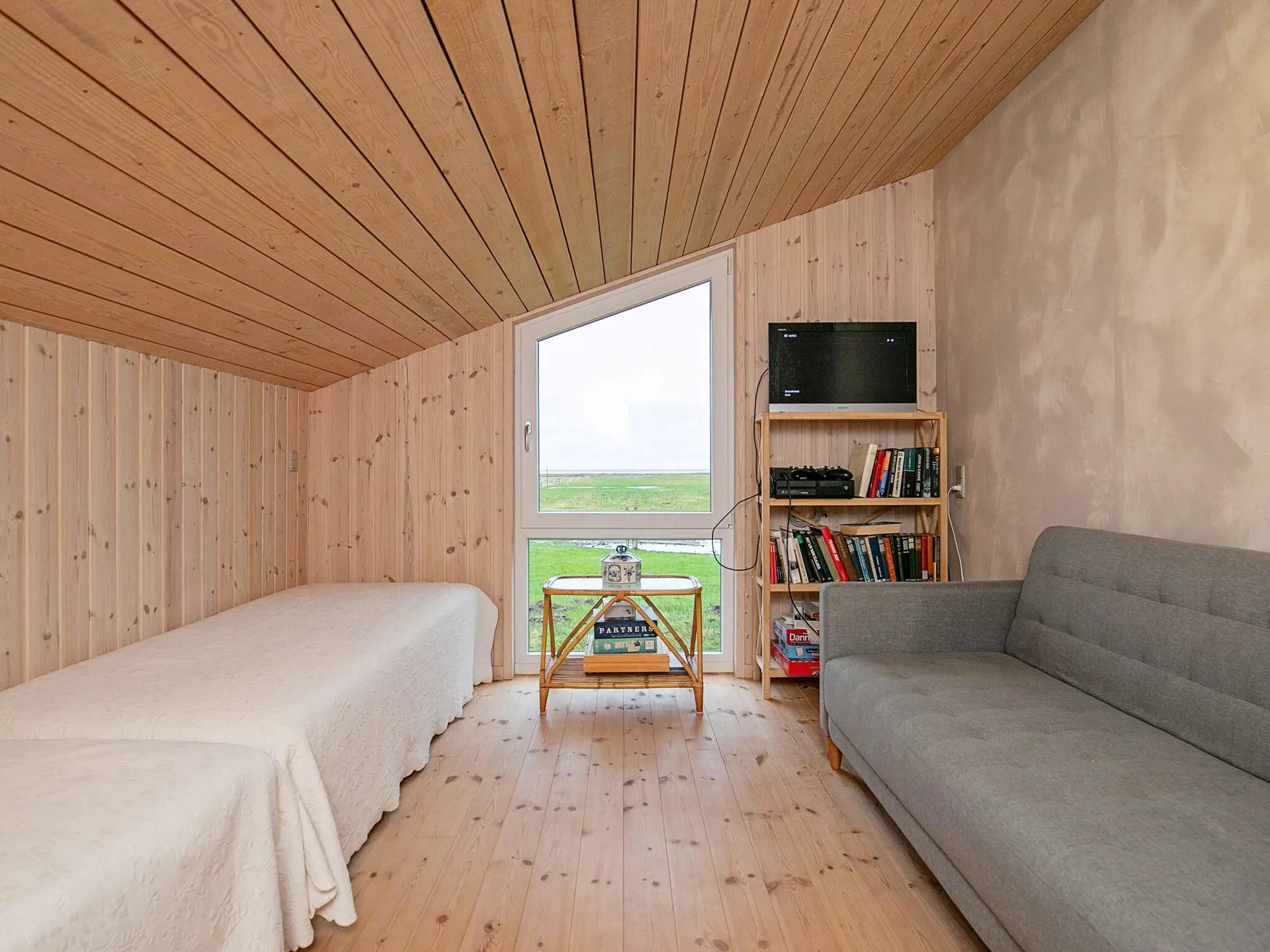 Es gibt zwei helle Schlafzimmer mit je einem Doppelbett und Stauraum sowie ein dritter Schlafbereich mit zwei Einzelbetten, der zugleich als Fernsehzimmer genutzt wird. Zur techischen Ausstattung des Hauses gehören u.a. WLAN und Chromecast zum Streamen eigener Anbieter. Geräumiges Badezimmer mit Dusche und Waschmaschine.