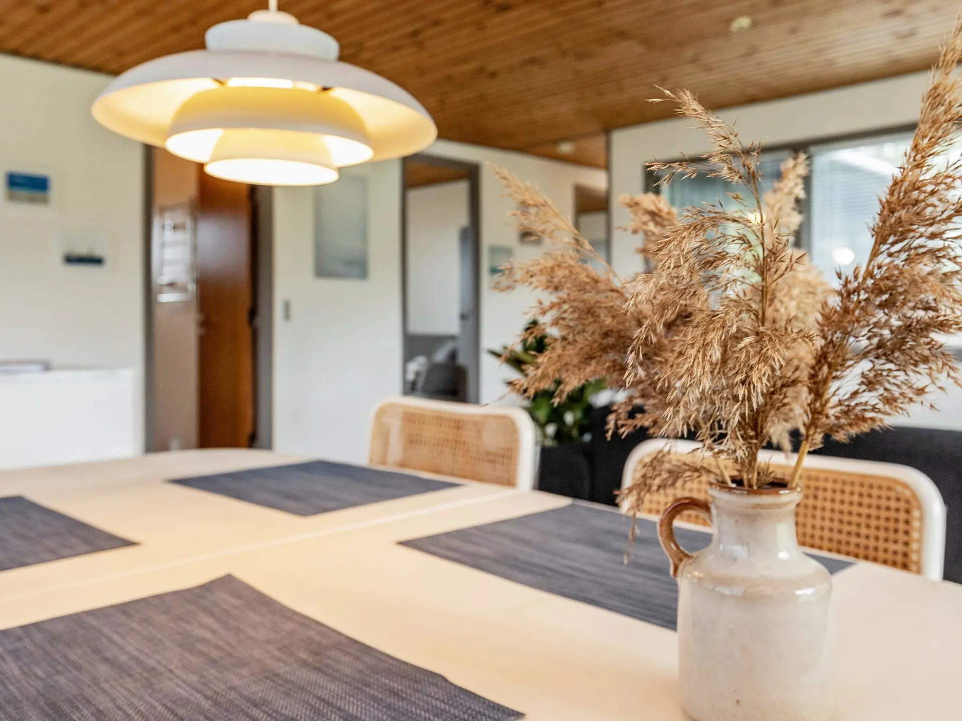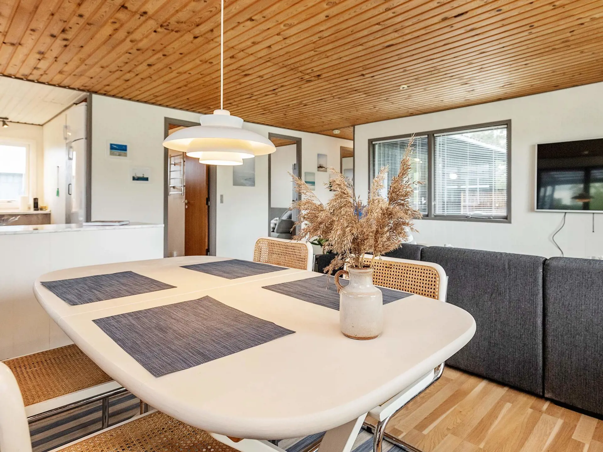 Das Ferienhaus hat eine gemütliche Einrichtung und drei separate Schlafzimmer für den erholsamen Schlaf. Den Mittelpunkt bildet der halb offene Küchen-/Wohnbereich für das Familienleben. Die Terrrassenfläche ist teilweise überdacht und lädt zum Sonnenbaden und gemütlichen Grillabenden ein. Das Haus liegt auf einem sonnigen Naturgrundstück mit guten Spielmöglichkeiten. Es gibt auch eine Schaukel für die Kleinen. Darüber hinaus gibt es einen fantastischen Ausblick ins Grüne. Die Umgebung ist ruhig und strandnah.
