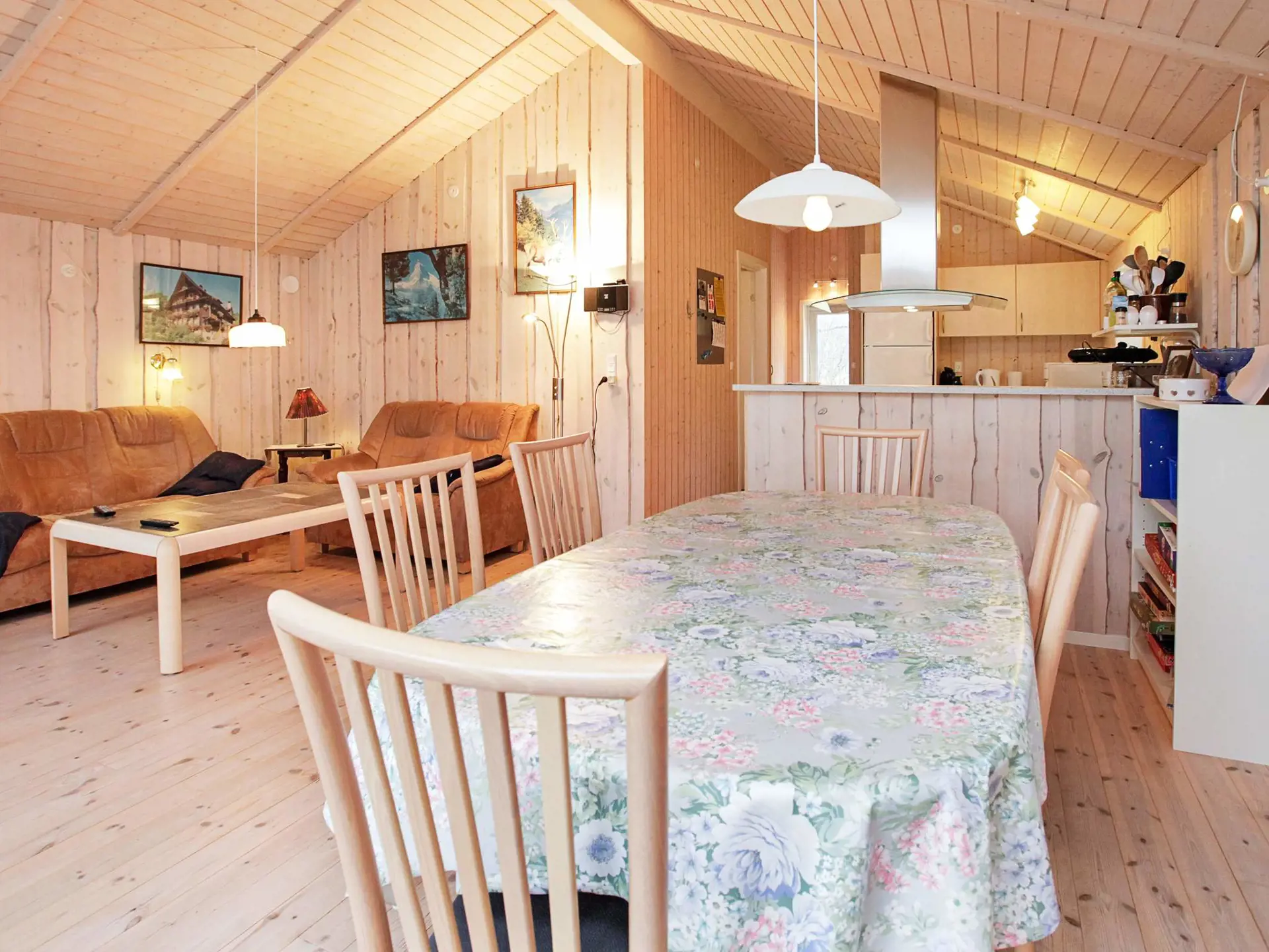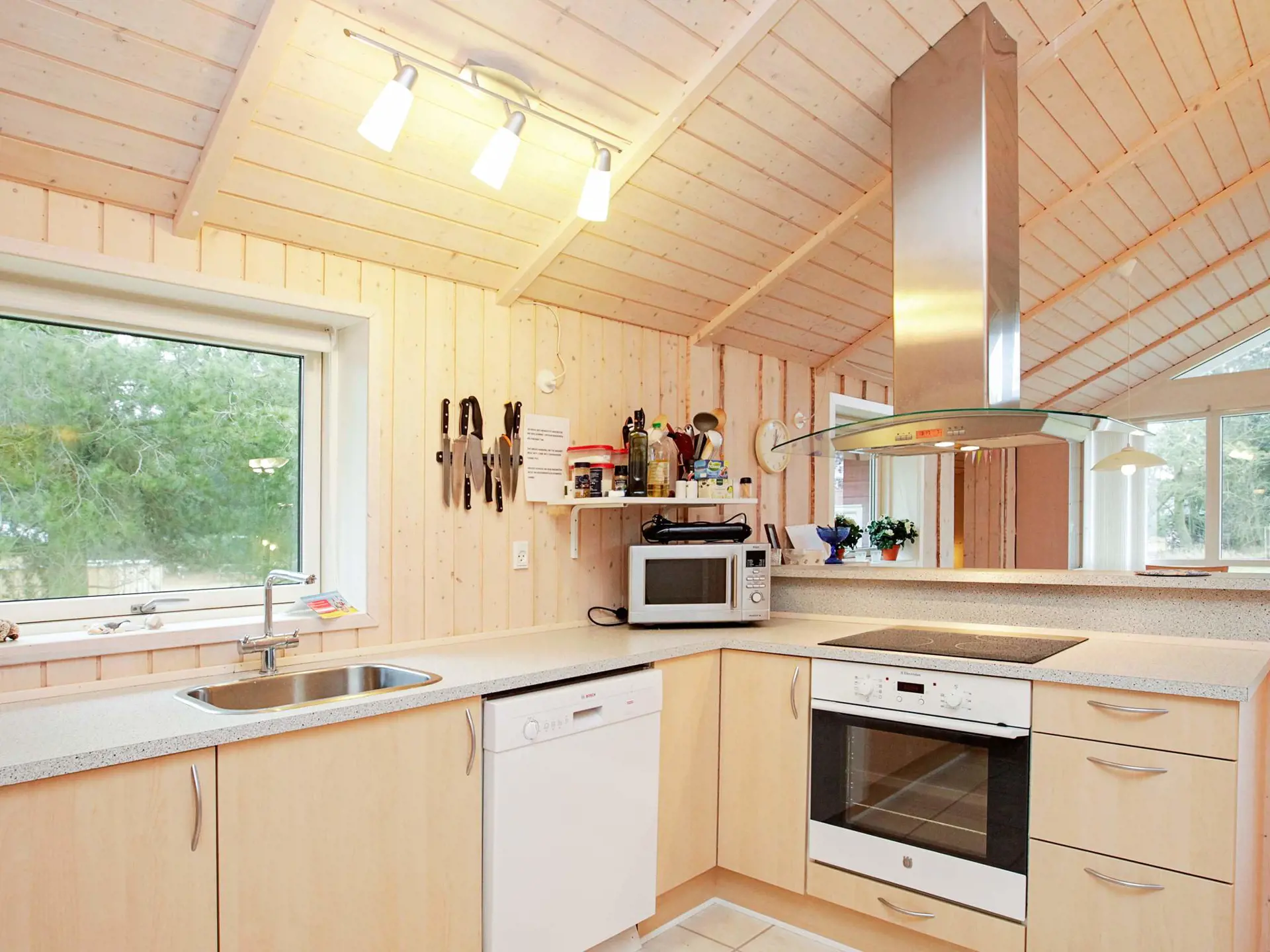 Helles und modernes Ferienhaus in einer Sackgasse, ca. 300 m vom Badestrand und dem Kaufmann entfernt gelegen. Die offene Küche ist gut ausgestattet und mit dem Wohnbereich mit Holzofen kombiniert. Hohe Dachschrägen und ein guter Lichteinfall geben dem Wohnzimmer das besondere Etwas. Die Südterrasse lädt zum Sonnenbaden und gemütlichen Abenden im Freien ein. Die ruhige Umgebung ist durch eine Mischung von Strand, Meer, Wald und Wiesen gekennzeichnet.