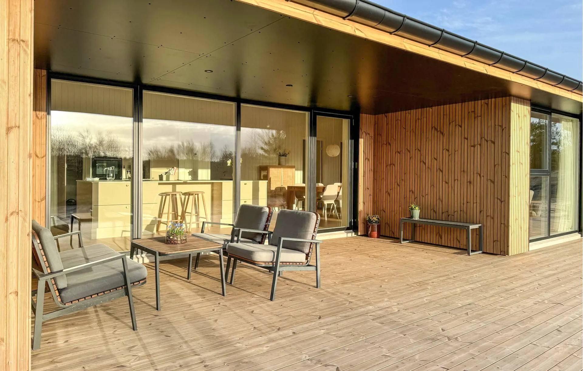 Genießen Sie draußen die Ruhe und Weite und beginnen Sie den Tag mit einem Frühstück im Sonnenschein auf der Terrasse. Entspannen Sie bei einem ausgedehnten Sonnenbad oder lassen Sie den Blick über die umliegende Natur schweifen. Gönnen Sie sich besondere Momente im Finnischen Holzbad, das mit Holz beheizt wird und Ihnen ein erholsames Badeerlebnis unter freiem Himmel bietet.
