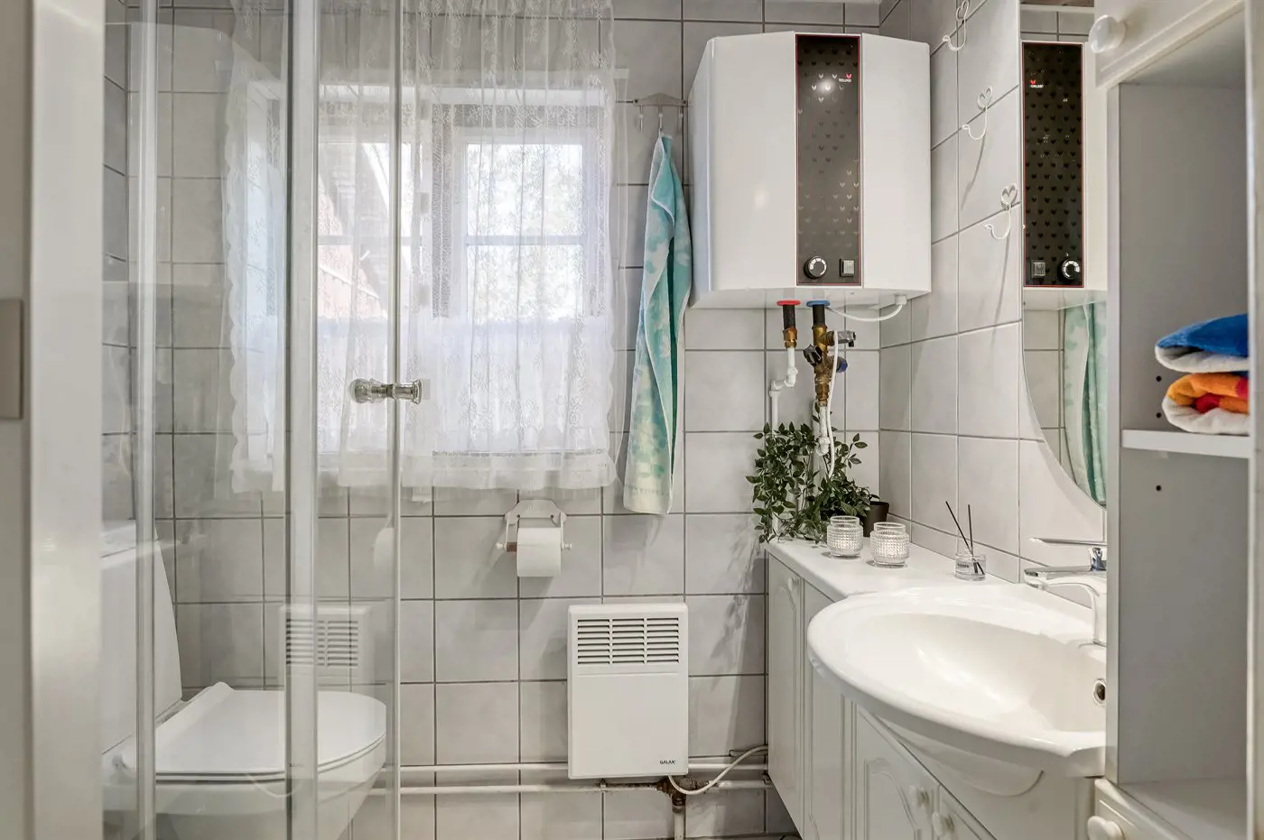 Es gibt 1 Badezimmer mit Duschnische und 1 Toilette.