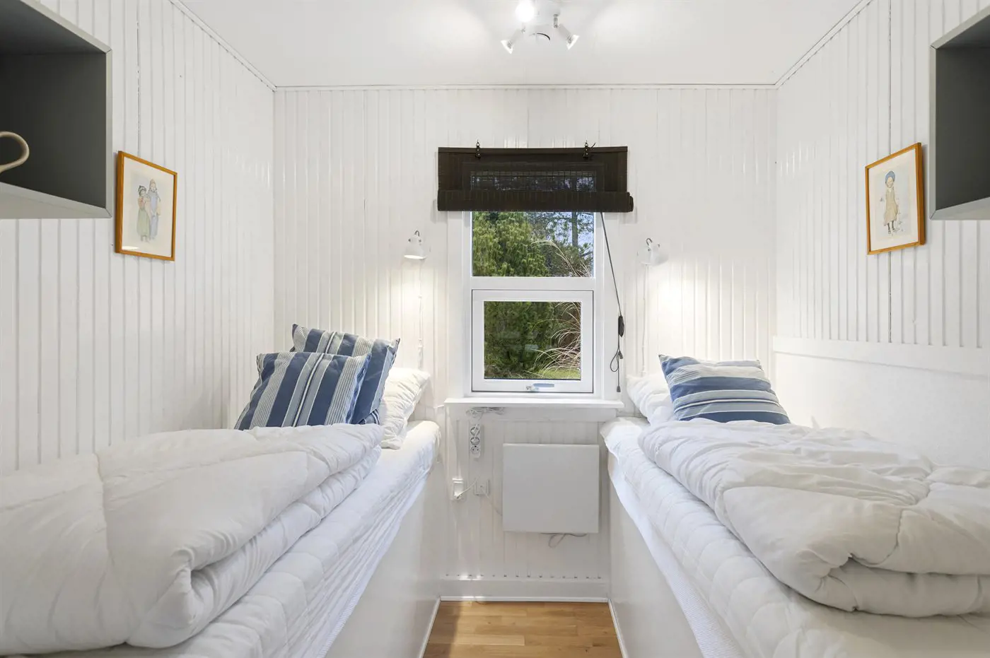 Die Schlafplätze verteilen sich auf 2 Schlafräume. 2 Schlafplätze in einem Doppelbett. 2 Schlafplätze in Einzelbetten. Ferner steht ein Kinderbett zur Verfügung.