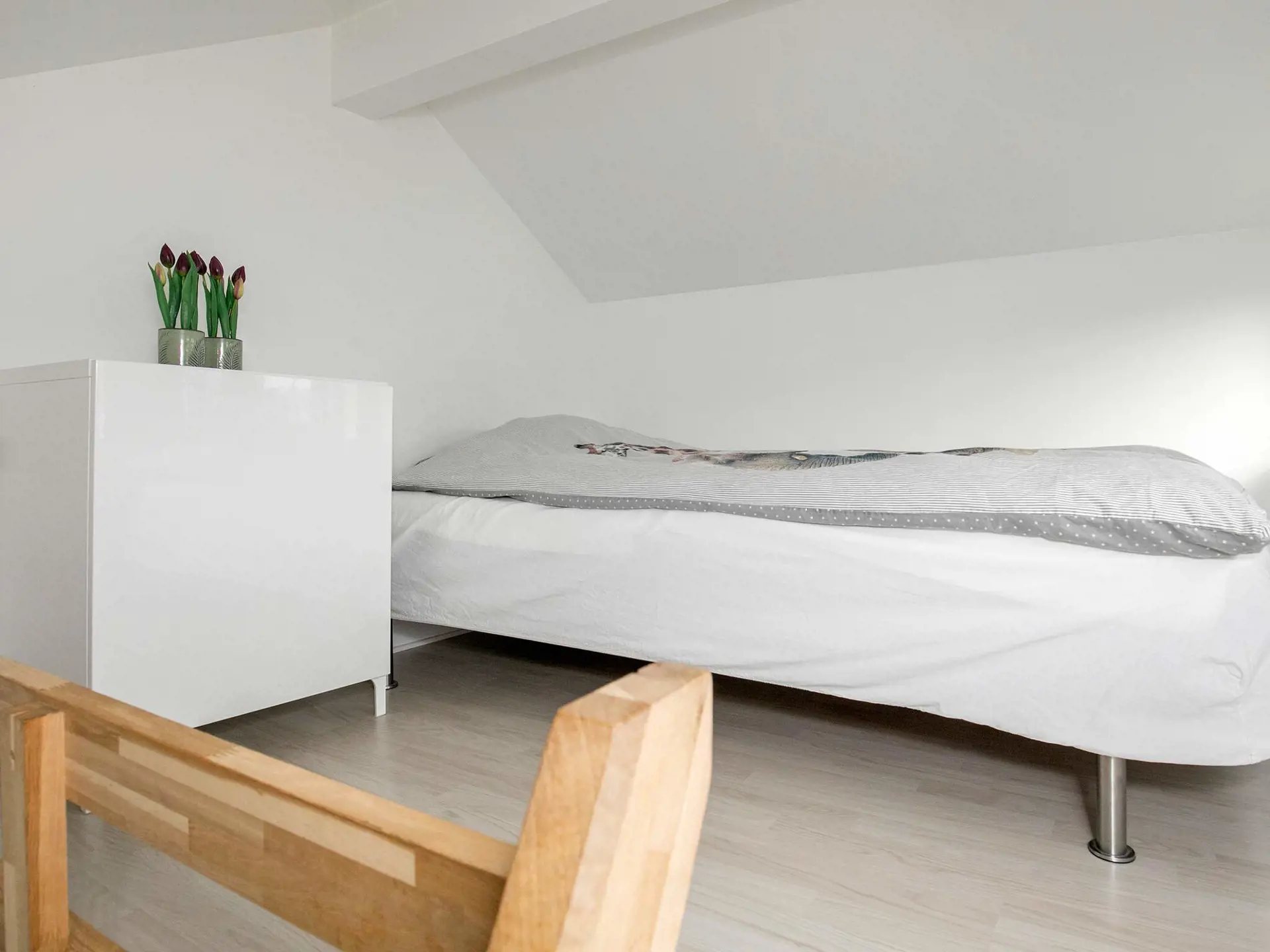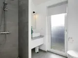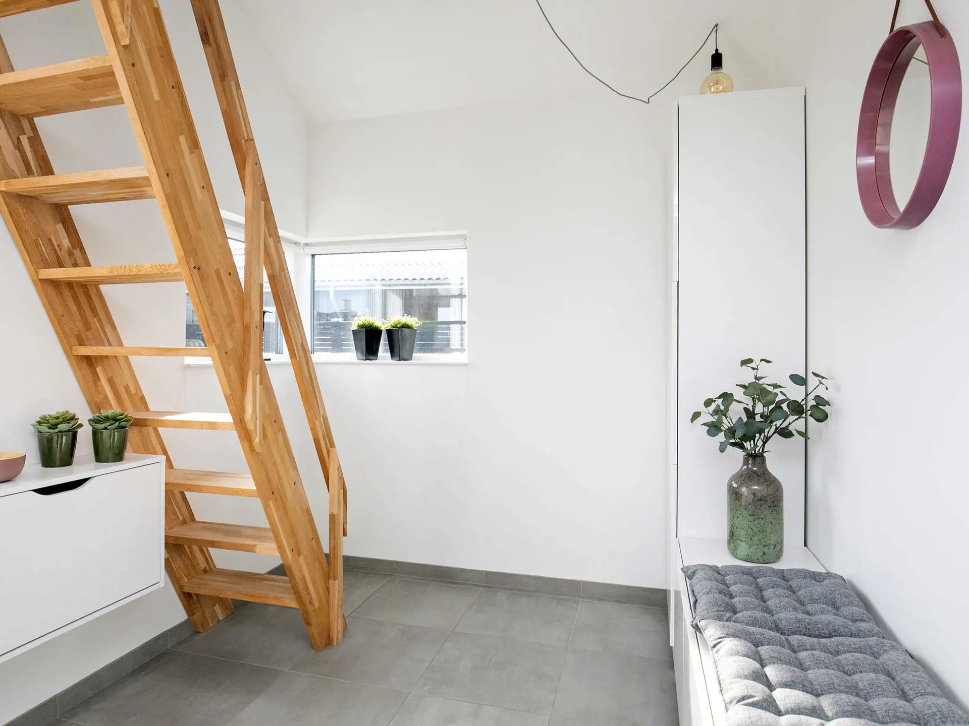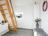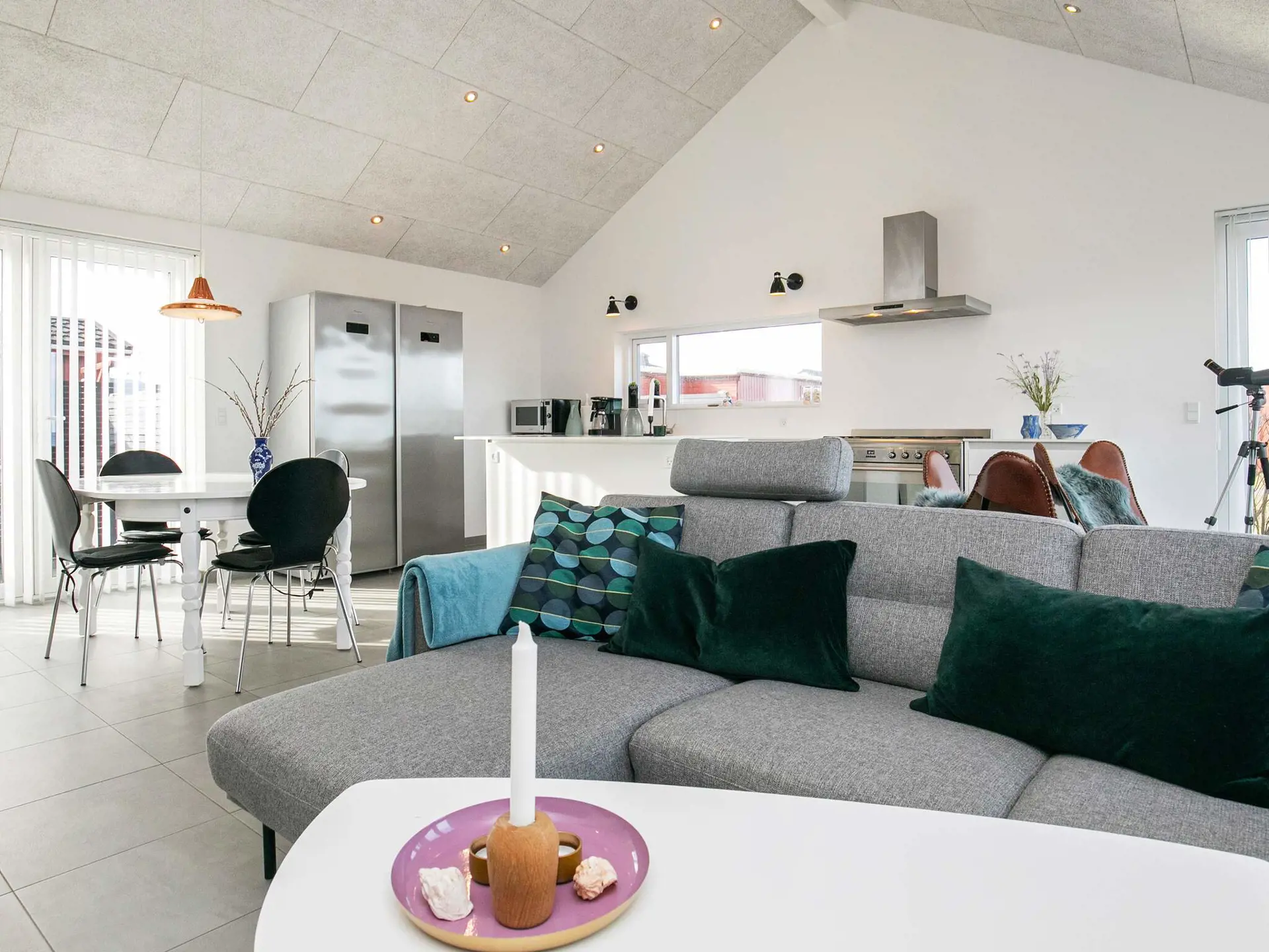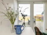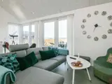Im Inneren erwartet Sie der offene Küchen-/Wohnbereich für das Familienleben, der geschmackvoll eingerichtet und mit großen Fenstern ausgestattet ist, um möglichst viel Tageslicht und zugleich schöne Aussicht zur Küste zu bieten. Zudem gibt es zwei Schlafzimmer und einen Hems oben unter der Dachschräge mit weiteren Schlafplätzen und Meerblick.