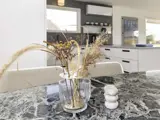 Nach einer umfassenden Renovierung 2017 präsentiert sich das Ferienhaus mit einer modernen und einladenden Inneneinrichtung. Im Herzen des Hauses finden Sie eine offene Küche mit Essbereich, die zu gemütlichen Momenten bei gemeinsamen Mahlzeiten oder Karten- und Brettspielen einlädt.
