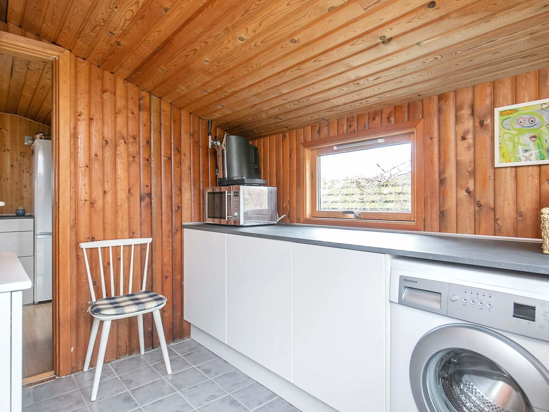 Gut ausgestatteter, offener Küchen-/Essbereich mit Zugang zur Holzterrasse mit guten Gartenmöbeln und Grill. Im Wohnzimmer sorgt die große Fensterpartie für viel Tageslicht und guten Ausblick. Zudem Badezimmer mit Dusche und angenehmer Fußbodenheizung sowie praktischer Hauswirtschaftsraum mit Waschmaschine im Haus.