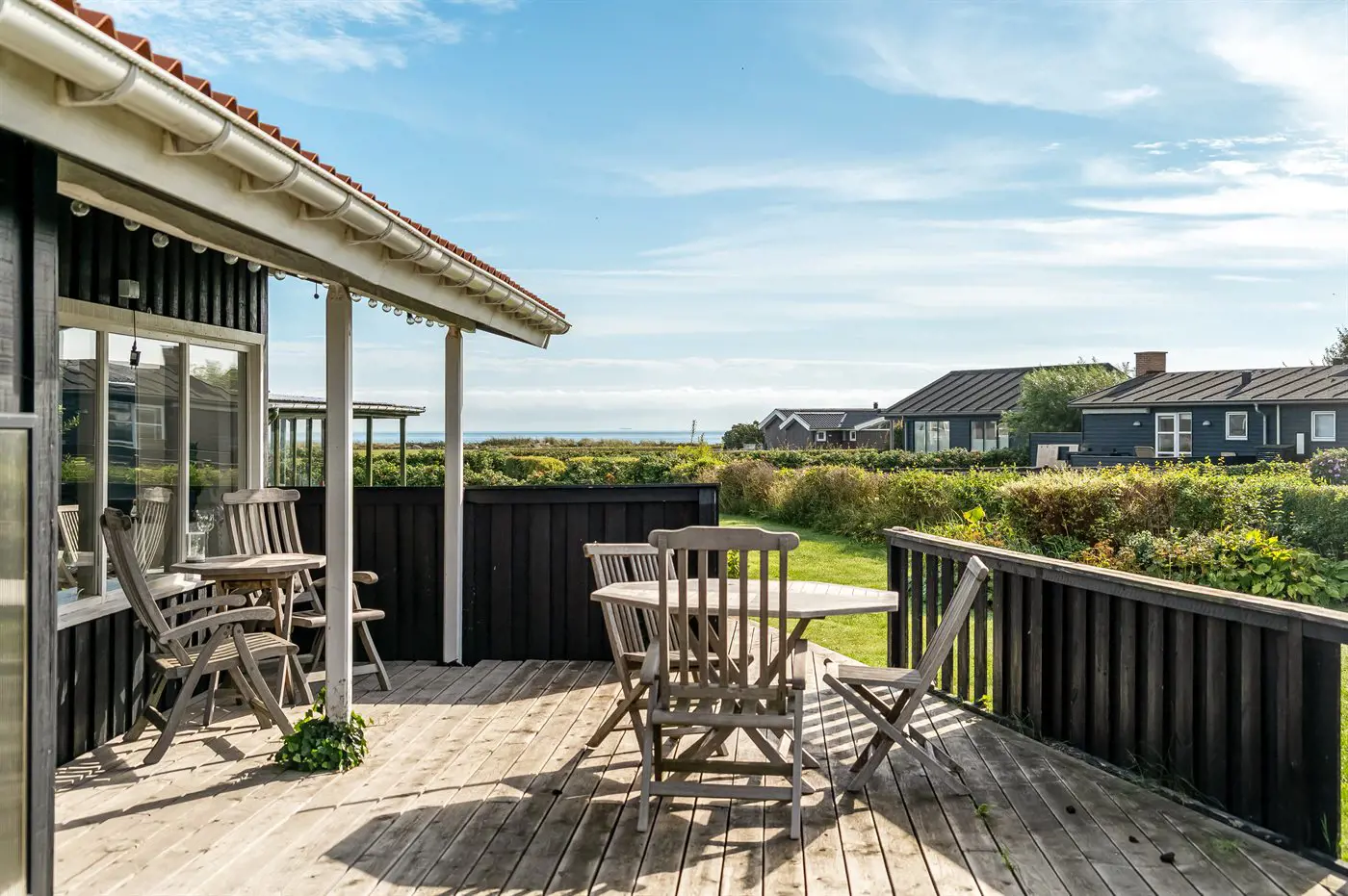 Die Ferienunterkunft liegt auf einem 730 m² großen Gartengrundstück. Die Entfernung zum Meer beträgt 90 m. Die nächste Einkaufsmöglichkeit liegt 2100 m entfernt. Es steht ein offenes Terrassenareal zur Verfügung. Außerdem gibt es überdachte Terrasse. Es steht ein Grill zur Verfügung. Es ist ein Ladestecker für Elektroautos installiert. Ladestecker Typ 2. Mit einer Ladeleistung von 11 kW. Parkplatz auf dem Grundstück.