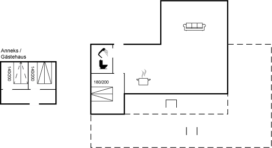 Die Schlafplätze verteilen sich auf 3 Schlafräume. 4 Schlafplätze in Doppelbetten. 2 Schlafplätze auf einer Doppelschlafcouch. 4 von diesen Schlafplätzen befinden sich in einem Gästehaus (auf 2 Schlafzimmer verteilt).