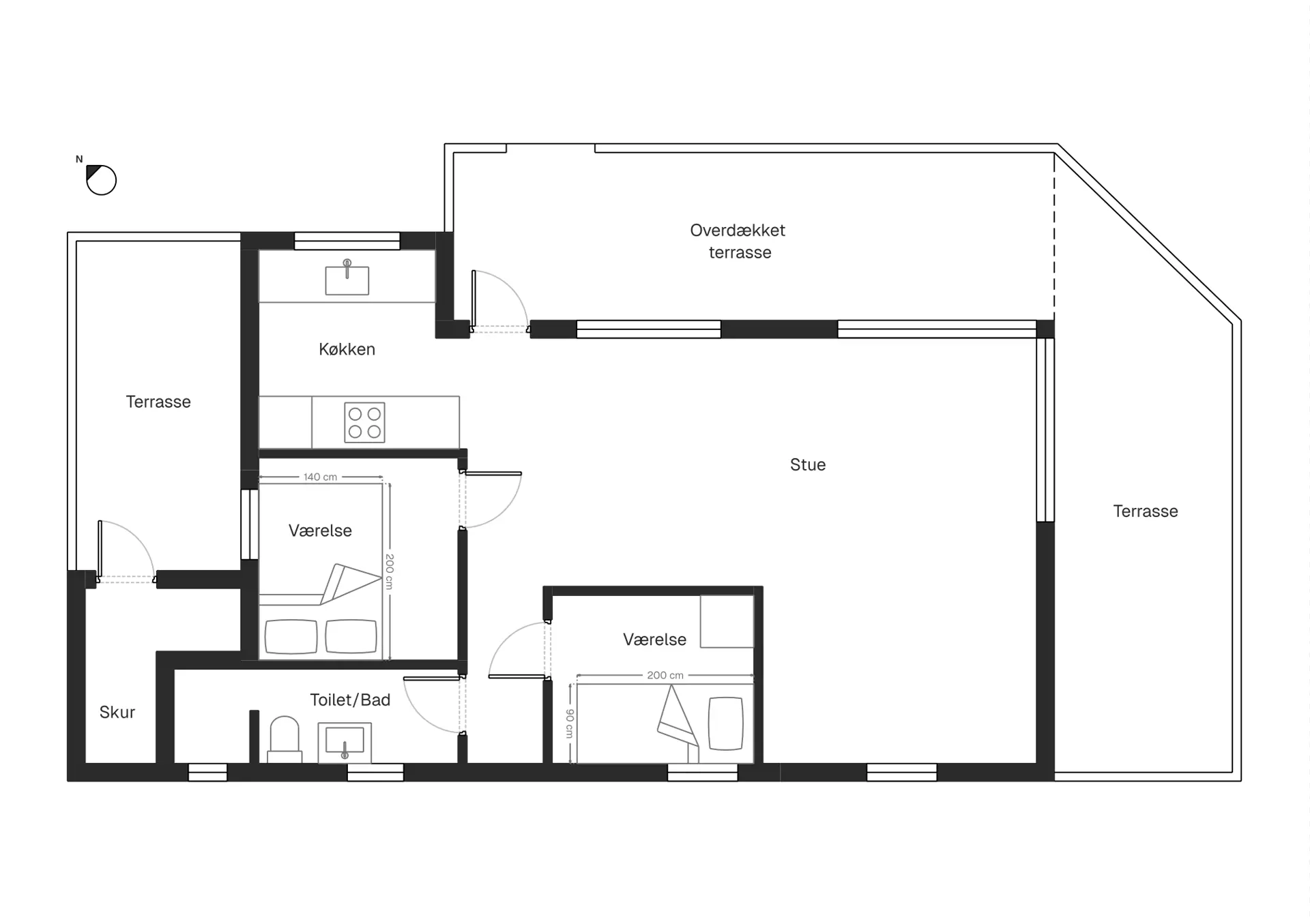 Ein gut funktionierendes Haus von 53 m², bei dem der Platz optimal genutzt ist. Vor dem Haus befindet sich eine 25 m² große überdachte Terrasse, auf der Sie gemütliche Tage und Abende mit dem kleinen Kamin oder Grill genießen können.