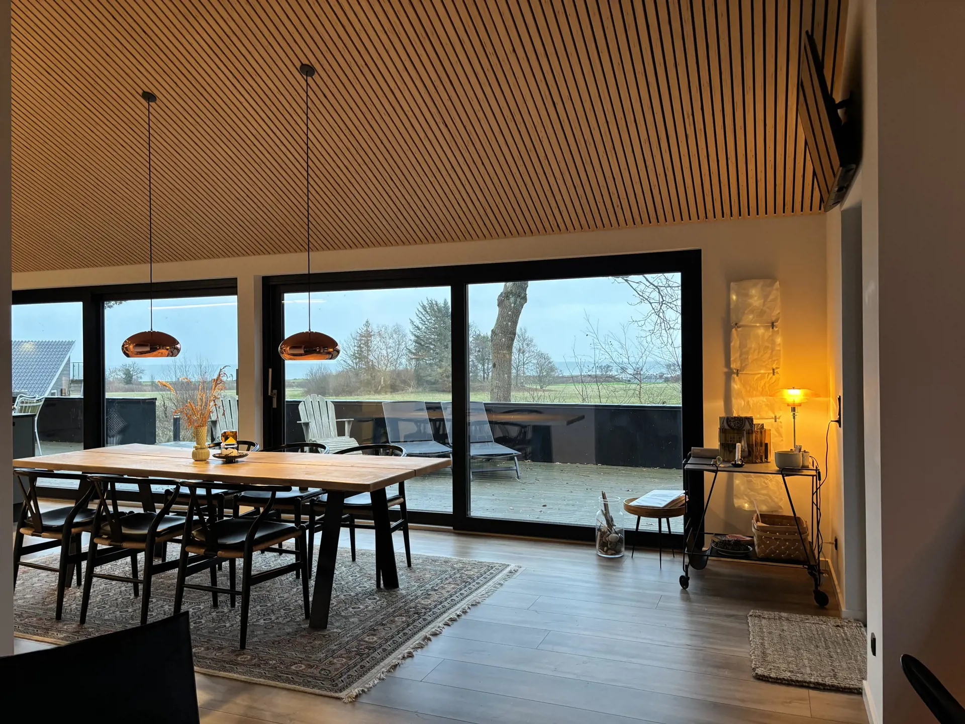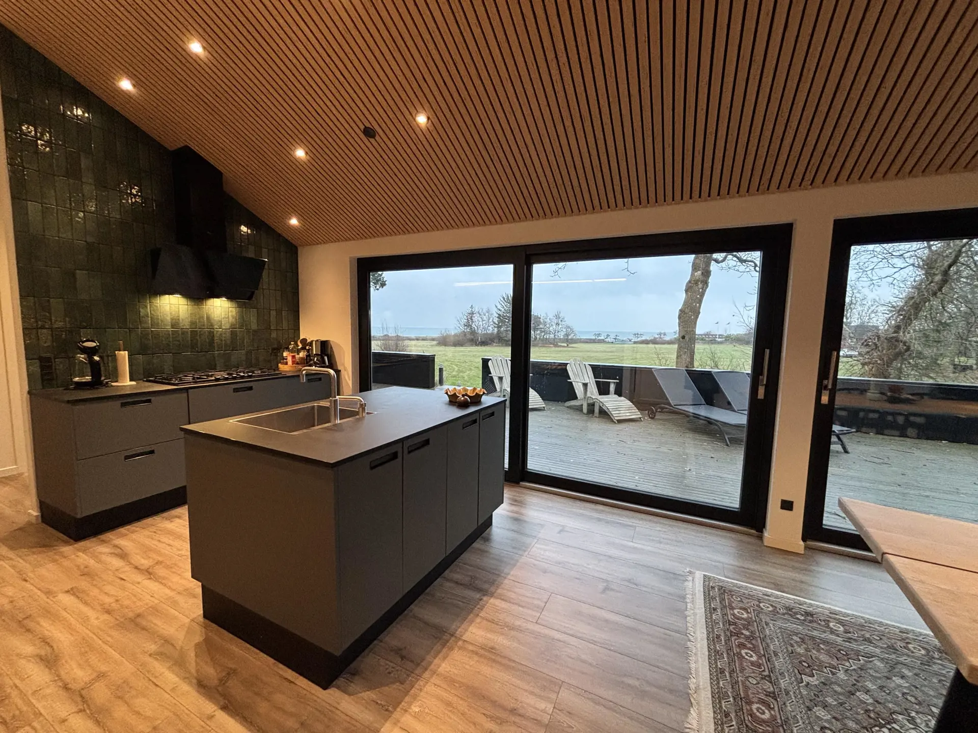 Im Inneren erwartet Sie ein helles, stilvolles Ambiente mit hochwertigen Materialien und viel Liebe zum Detail. Das Haus verfügt über drei einladende Schlafzimmer, zwei elegante Badezimmer sowie eine gut ausgestattete Küche, deren große Fensterfront den Blick aufs Meer freigibt – selbst das Kochen wird hier zum Vergnügen. Der offene Ess- und Wohnbereich führt direkt auf die Terrasse.