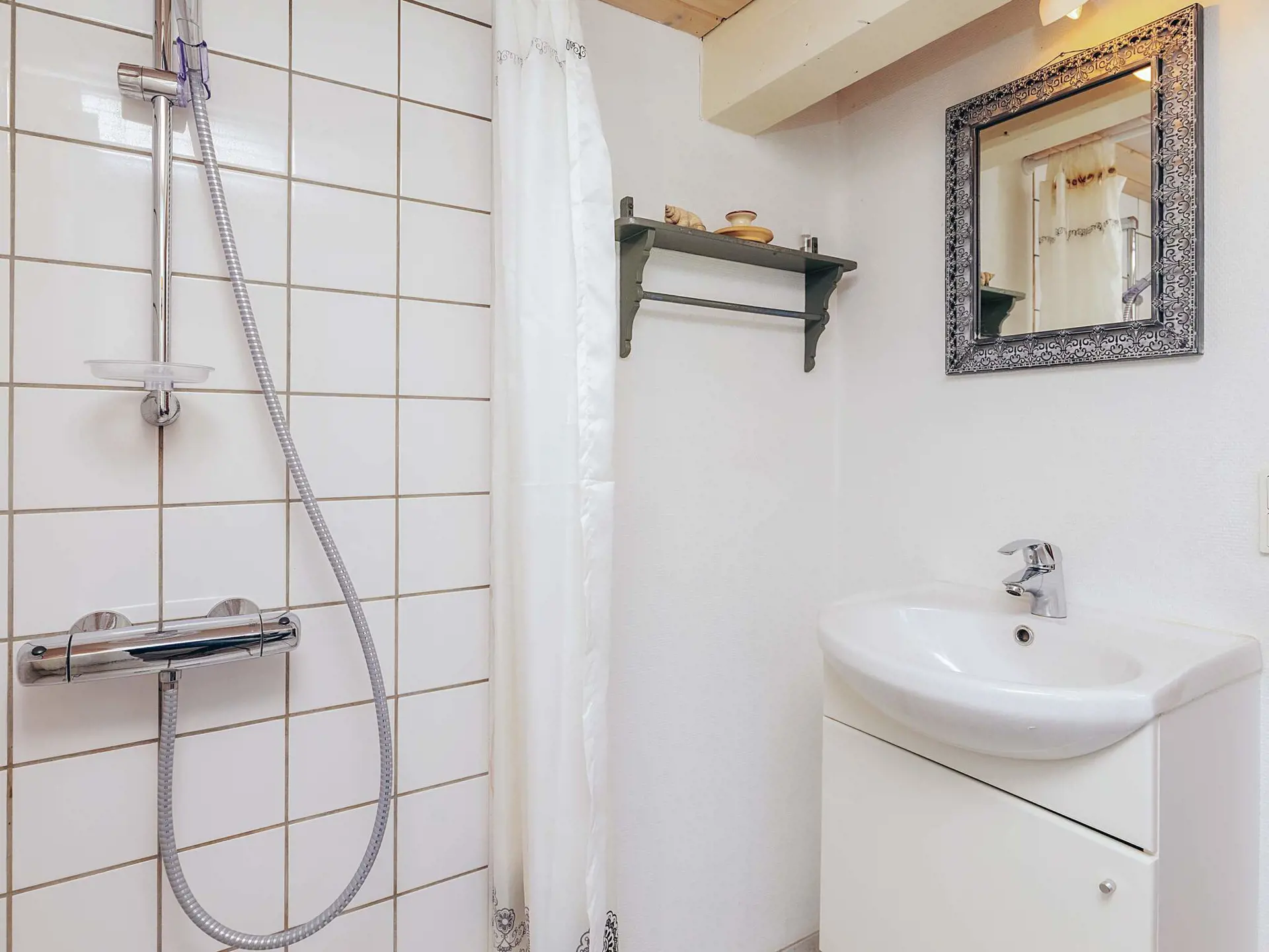Das Haus bietet einen hellen Wohnbereich mit offener Küche, die mit dem Wohnzimmer verbunden ist. Im Wohnzimmer befindet sich außerdem ein Doppelschlafsofa, das sowohl zum Entspannen als auch zum Schlafen einlädt. Das Haus verfügt außerdem über ein geräumiges Schlafzimmer mit Kleiderschrank sowie ein Badezimmer mit Dusche und Fußbodenheizung für zusätzlichen Komfort. Bitte beachten Sie, dass die Deckenbalken nur etwa 175 cm hoch sind. Dies trägt zum Charme des Hauses bei, erfordert aber möglicherweise etwas Vorsicht für größere Gäste.