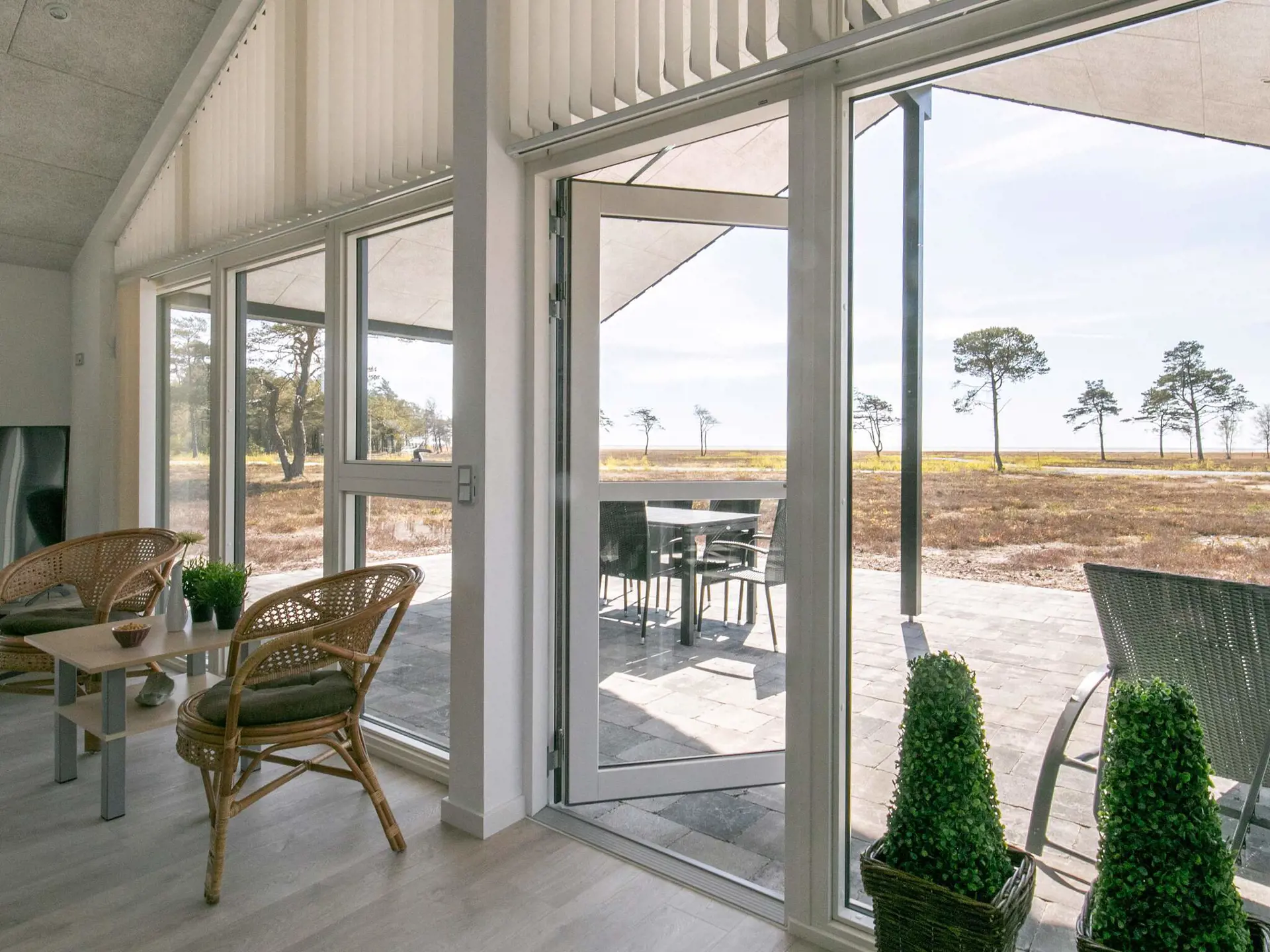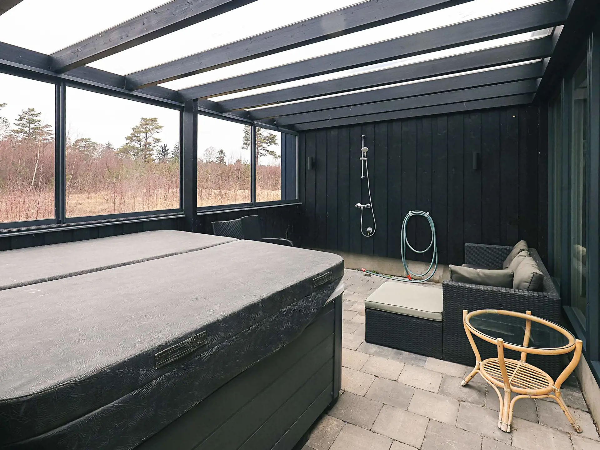 Ferienhaus mit Whirlpool im Außen- sowie Infrarotsauna im Innenbereich. Zudem bietet das Haus eine einzigartig schöne Lage mit herrlicher Panoramaaussicht zum unter Naturschutz stehenden Gebiet Bovet Bugt, das auch eine wunderbare Küste mit kinderfreundlichem Uferbereich zum Baden bietet.