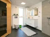 Im Haus gibt es auch zwei moderne Badezimmer mit Dusche und angenehmer Fußbodenheizung, eines zudem mit Infrarotsauna, bereit. Eine energieeffiziente Luft-Wasser-Wärmepumpe sorgt für eine klimafreundlichere Erwärmung des Hauses und reduziert zudem die Nebenkosten.