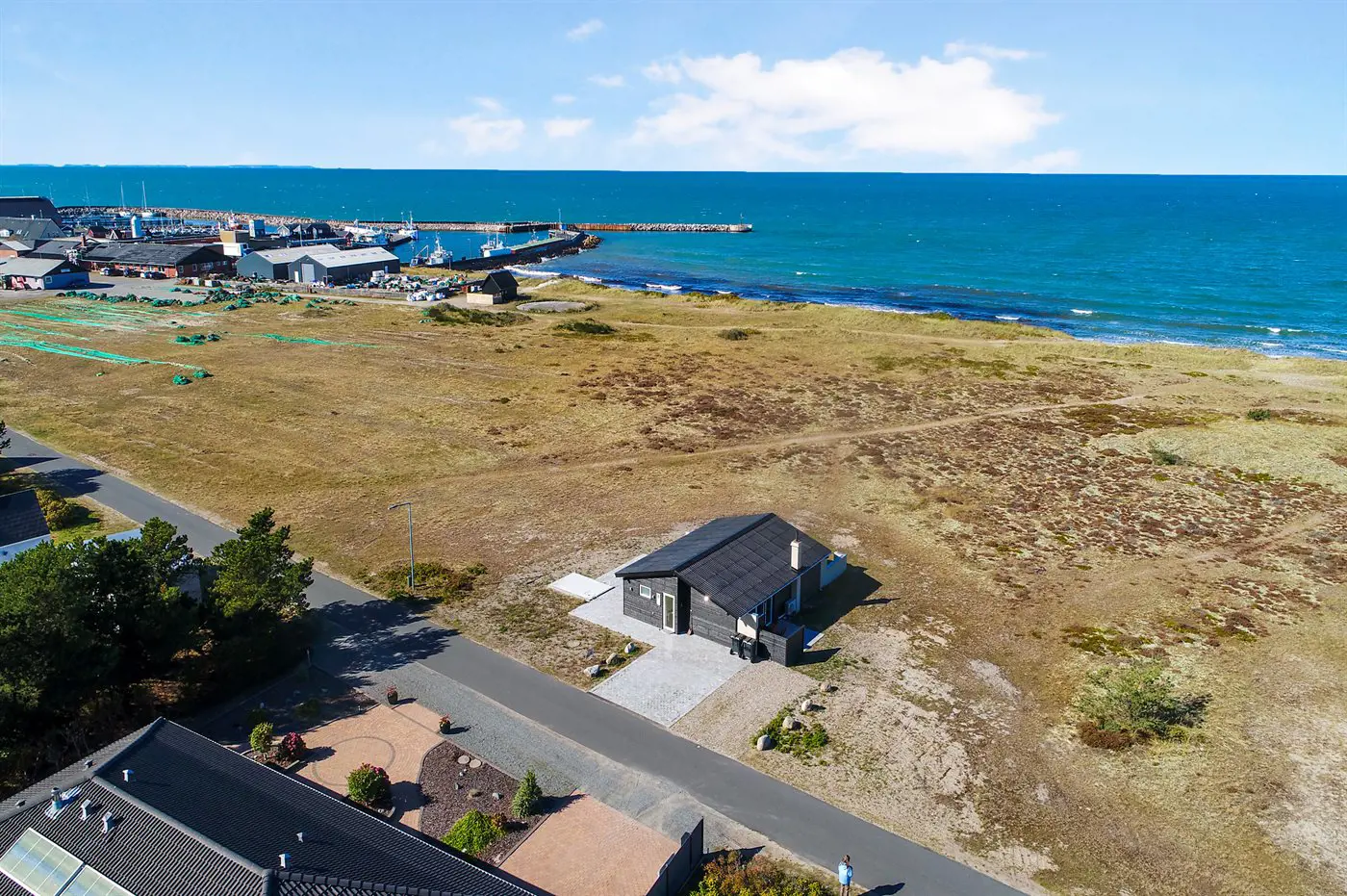Dieses gemütliche Ferienhaus liegt nur 75 Meter von der Küste entfernt und bietet einen herrlichen Panoramablick auf das Meer sowie auf den charmanten Fischereihafen in Østerby.