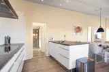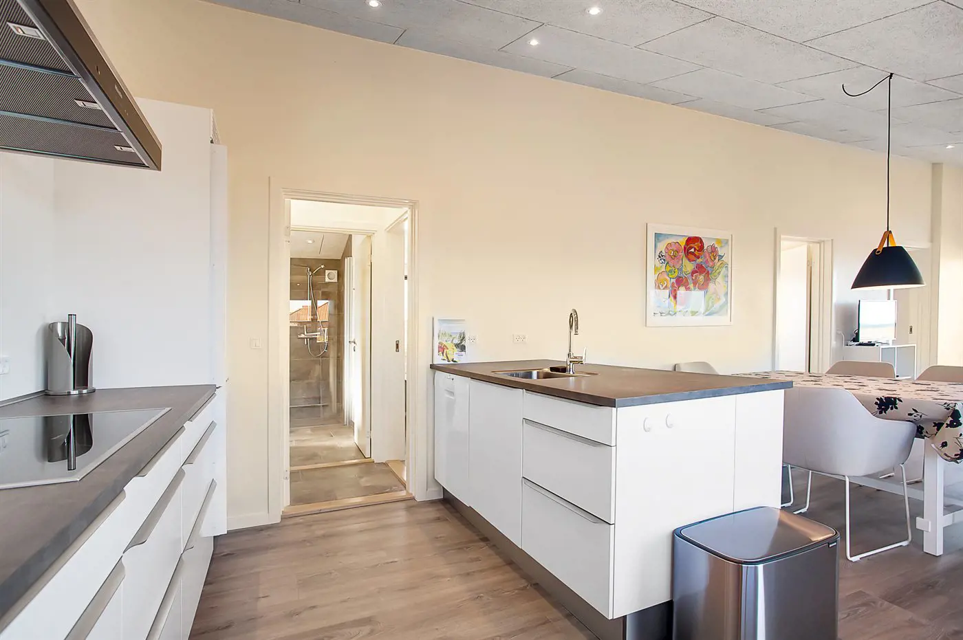 Die Küche ist mit Kühlschrank ausgestattet. Außerdem gibt es 4 Keramik-Kochfelder, Umluftofen sowie Geschirrspüler.