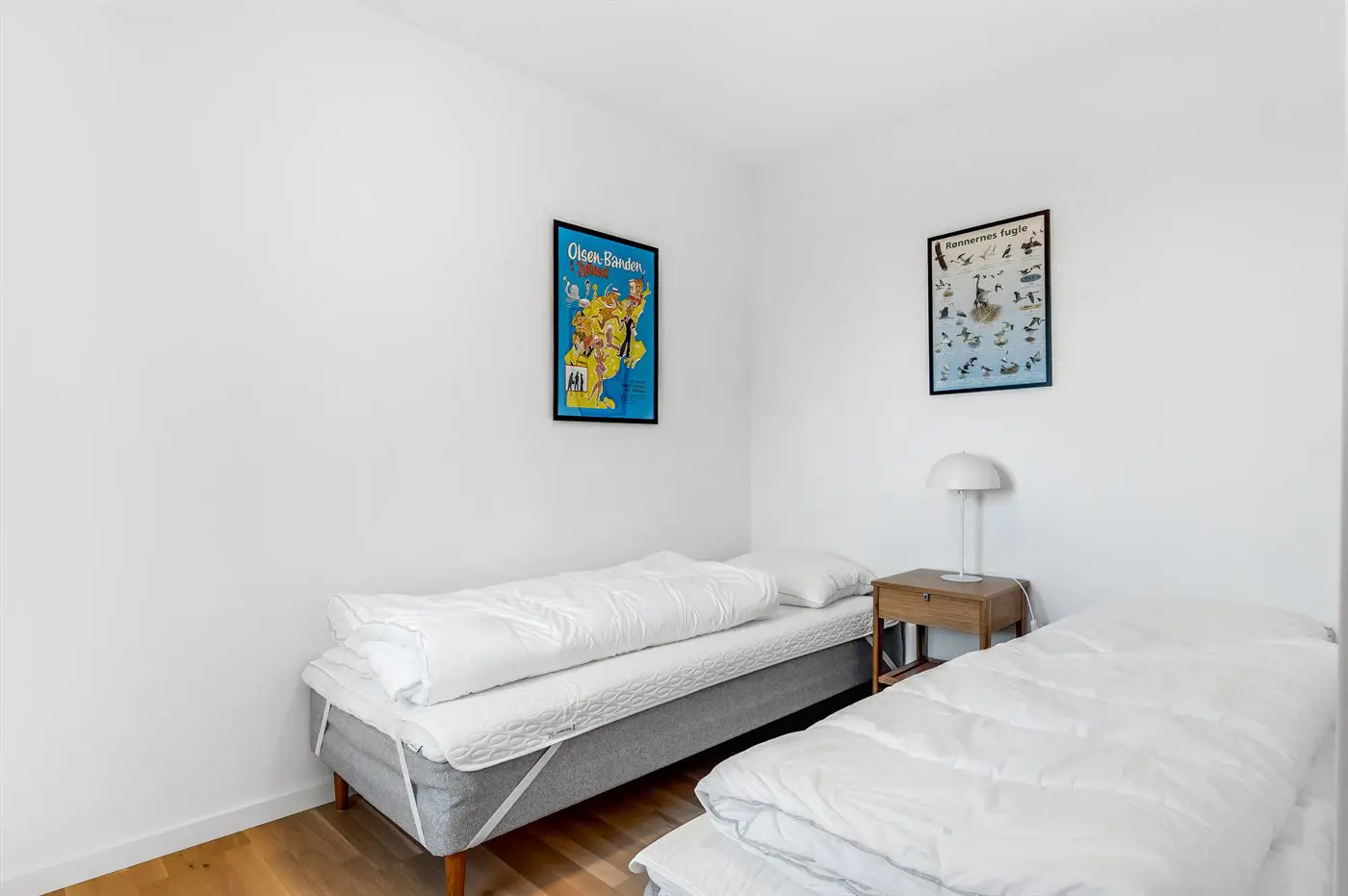 Die Schlafplätze verteilen sich auf 2 Schlafräume. 2 Schlafplätze in einem Doppelbett. 2 Schlafplätze in Einzelbetten.