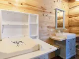 Dieses Ferienhaus ist mit seinen großen Balken, dem einzigartigen Baustil und viel Platz und Komfort etwas Besonderes. Mit großem Respekt für das Baumaterial, das fast ausschließlich aus riesigen Baumstämmen besteht, wurde Wert auf einzigartige und besondere Lösungen gelegt. Die großen Baumstämme, jeder für sich einzigartig und mit eigenem Charakter, sorgen nicht nur für eine fantastische Akustik und ein einzigartiges Raumklima, sondern bilden auch die Grundlage für die wunderbare Atmosphäre, die schnell zum Entspannen einlädt und perfekt zur DNA von Læsø passt.