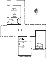 Die Schlafplätze verteilen sich auf 3 Schlafräume. 6 Schlafplätze in Doppelbetten.- 4 von diesen Schlafplätzen verteilen sich auf 2 Gästehäuser.
