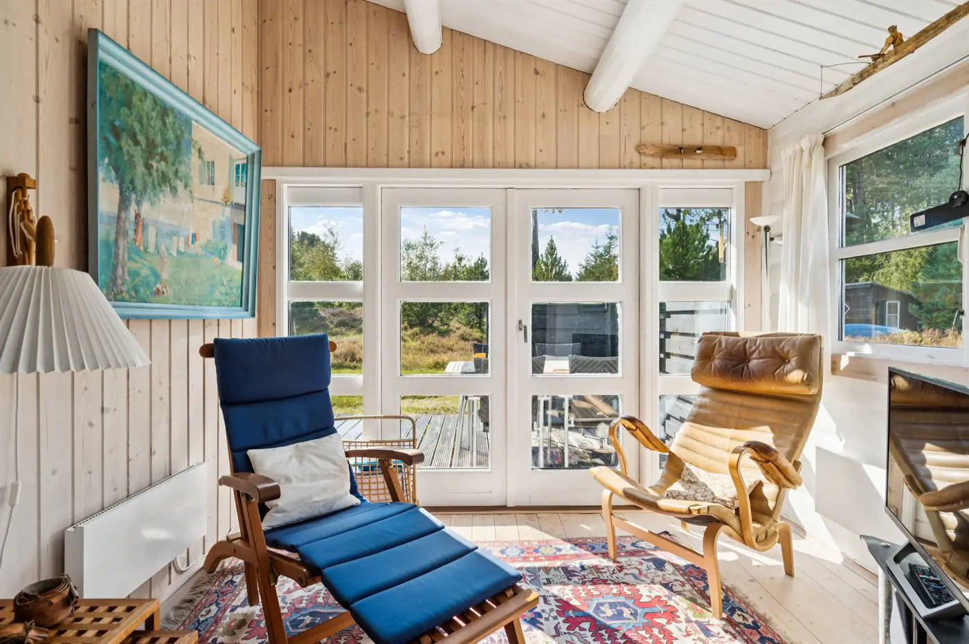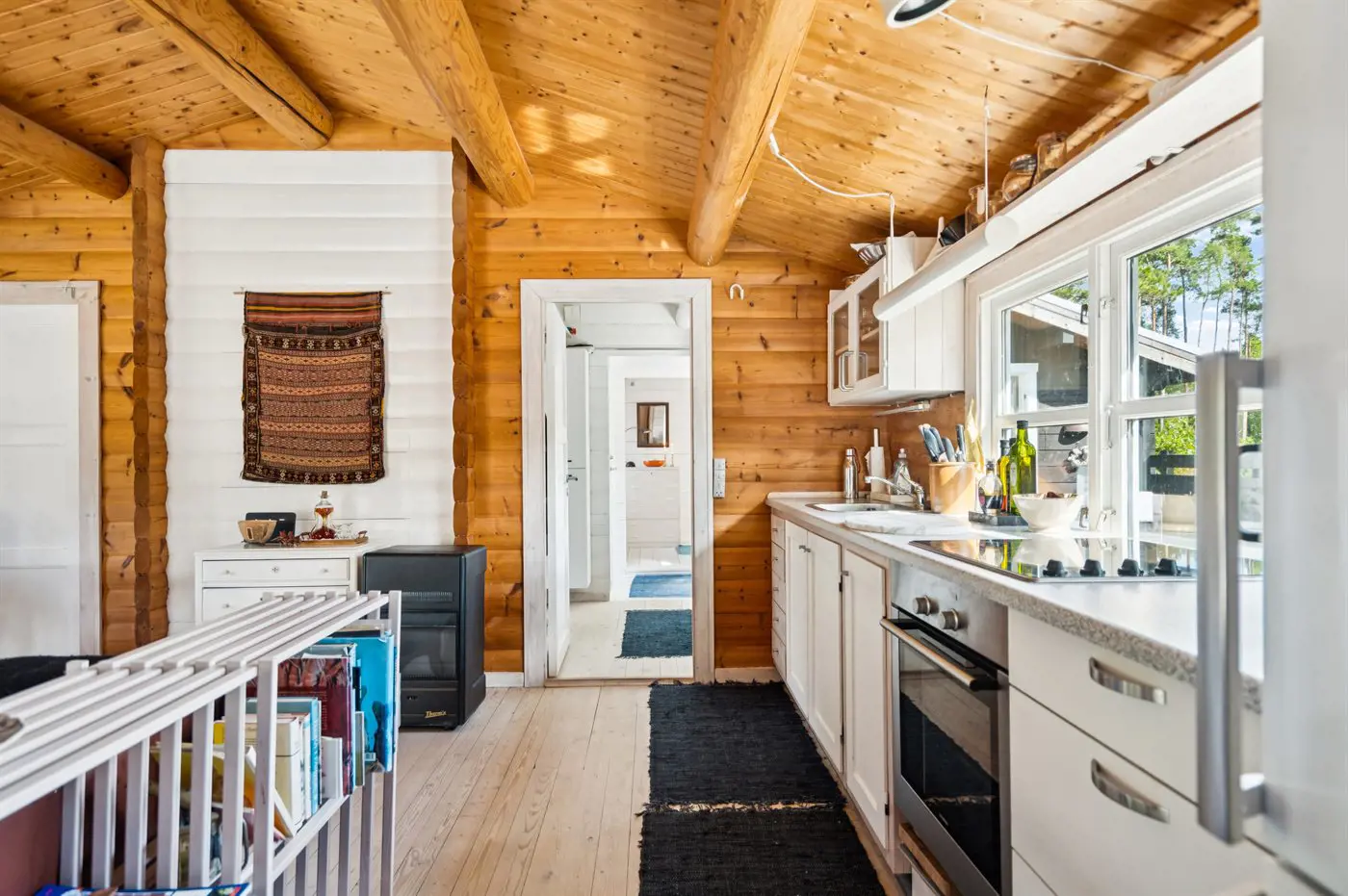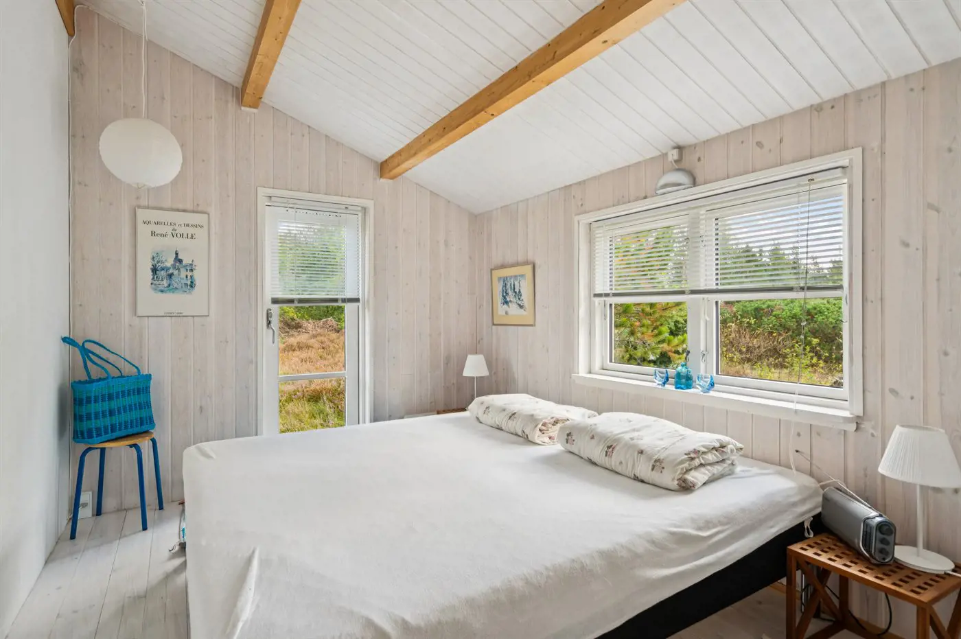 Das Ferienhaus präsentiert sich hell und einladend mit einer guten und funktionalen Einrichtung, die sowohl Raum für Gemeinschaft als auch für Privatsphäre bietet. Wohnbereich und Küche gehen nahtlos ineinander über und bilden den Rahmen für gemeinsame Mahlzeiten, Brettspiele und entspannte Stunden nach einem Tag in der Natur.