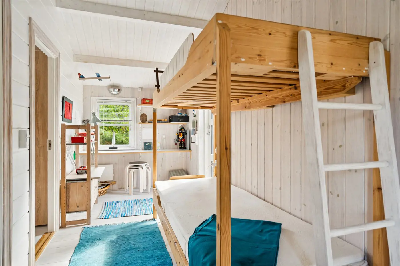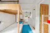 Die Schlafplätze verteilen sich auf 3 Schlafräume. 4 Schlafplätze in Doppelbetten. 4 Schlafplätze in Etagenbetten. Zwei der Schlafplätze im Etagenbett befinden sich in einem Flur.