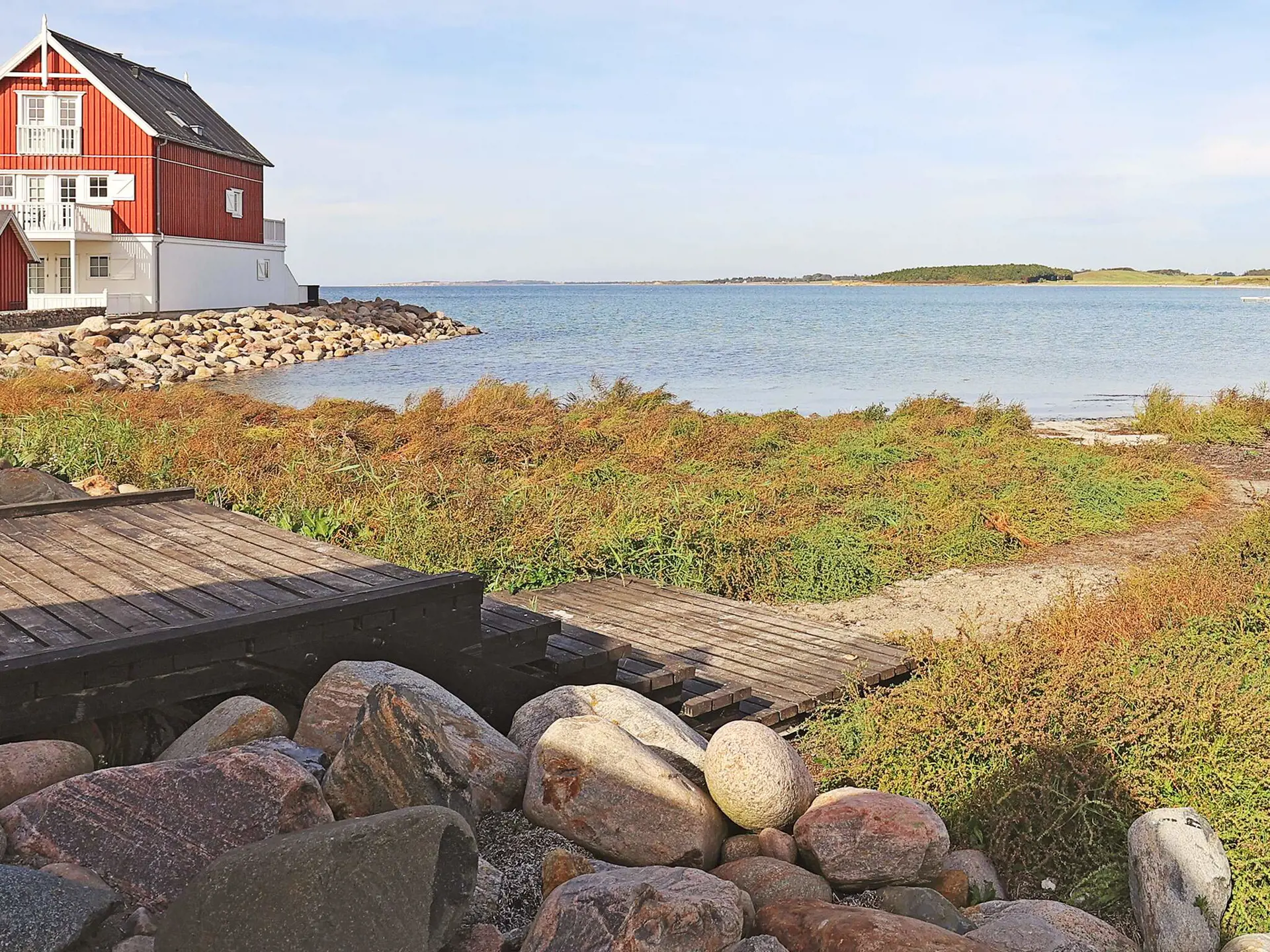 Im kleinen Hafen von Bagenkop liegt diese geräumige Ferienwohnung für bis zu acht Personen mit herrlicher Aussicht zum Hafen und zum attraktiven Badestrand mit kleinen Dünen. Diese Wohnung hat als einzige hier am Hafen ganze vier Schlafzimmer, ideal für eine große oder zwei befreundete Familien. Die 135 m² große Wohnung liegt in einem der charakteristischen Skagenhäuser, nur ein paar Meter vom kinderfreundlichen Strand mit Badesteg entfernt.