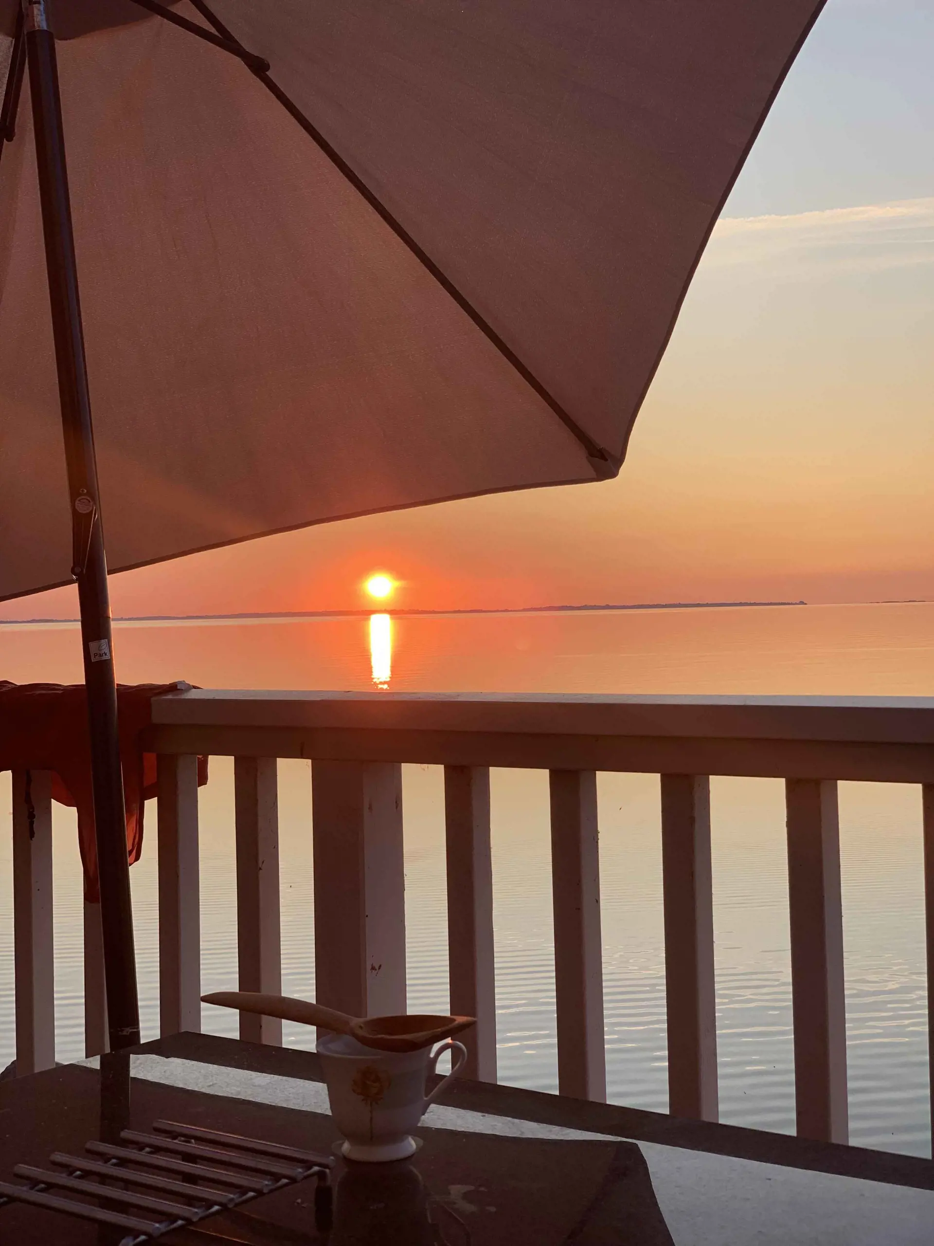 Im Regal liegen Bücher und Karten für küstennahe Wanderungen mit reichem Vogelbestand. Nehmen Sie den Kaffee mit nach draußen und planen Sie die nächste Route.