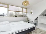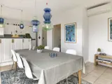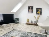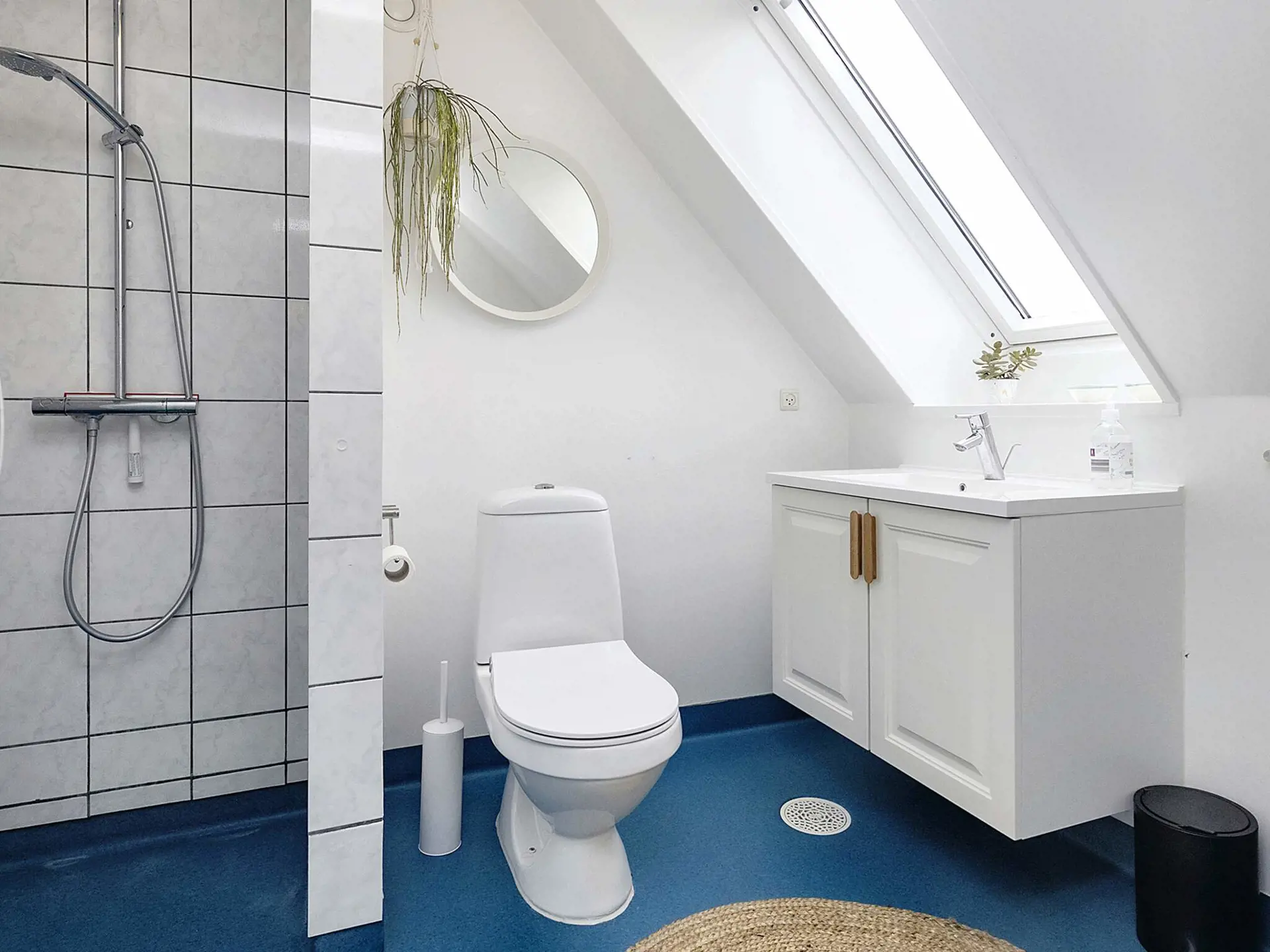 Oben im ersten Stock liegt das helle Wohnzimmer mit Radio und TV sowie ein großes Schlafzimmer mit zwei Einzelbetten und einem angeschlossenen Badezimmer mit Dusche. Nicht zuletzt können Sie hier oben den beeindruckenden 11 m2 großen Balkon mit einer atemberaubenden Aussicht genießen. Die großen Fensterflächen sorgen für viel Licht im ganzen Haus.