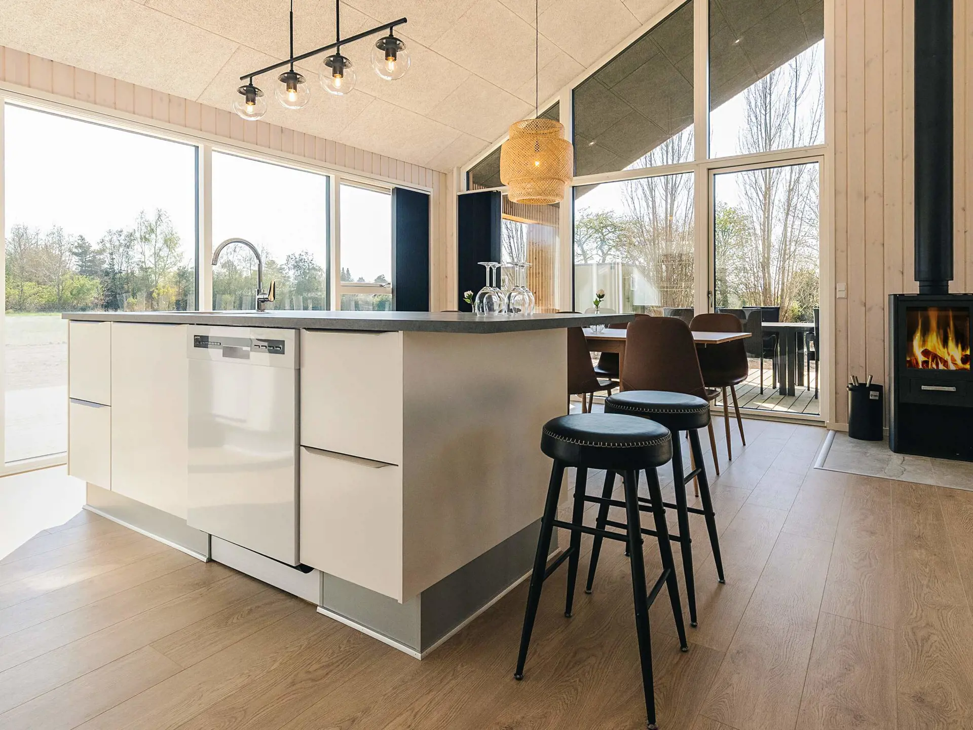 Das Ferienhaus bietet eine voll ausgestattete Küche mit Elektroherd, Kühl-Gefrierkombination, Kaffeemaschine und Geschirrspüler, perfekt für die Zubereitung von Mahlzeiten zu Hause. Der große Außenbereich verfügt über eine Terrasse mit Holzkohlegrill, ideal, um eine köstliche Mahlzeit zuzubereiten und dabei die frische Luft zu genießen.