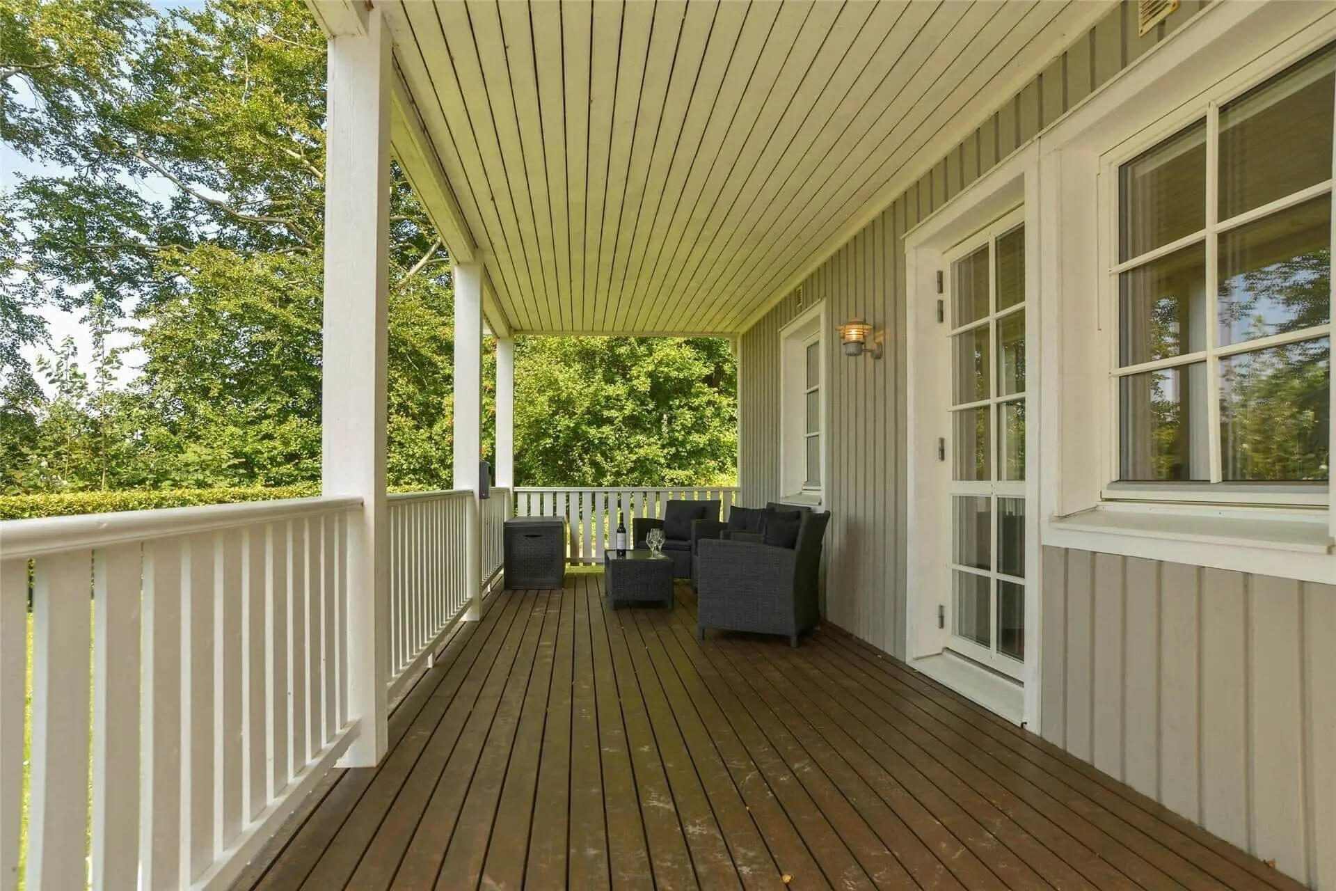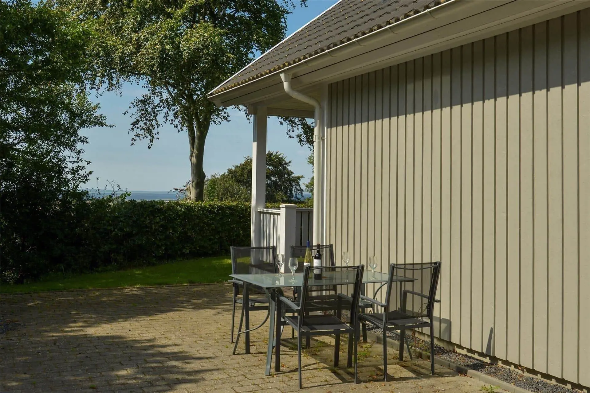 Draußen erwartet dich eine große Terrasse und ein schöner Naturgrund, der zu Outdoor-Aktivitäten und Entspannung einlädt. Die Terrasse ist der perfekte Ort, um deinen Morgenkaffee zu genießen, während du den Blick über die wunderschöne Landschaft schweifen lässt. Hier kannst du deine Liebsten zu gemütlichen Grillabenden versammeln, während der Sonnenuntergang den Himmel in warme Farben taucht. Das Grundstück rund um das Ferienhaus bietet viele Möglichkeiten zum Spielen und Erkunden, und du wirst leicht eine abgelegene Ecke finden, in der du eine ruhige Stunde mit einem guten Buch genießen oder einfach nur dem Zwitschern der Vögel lauschen kannst.
