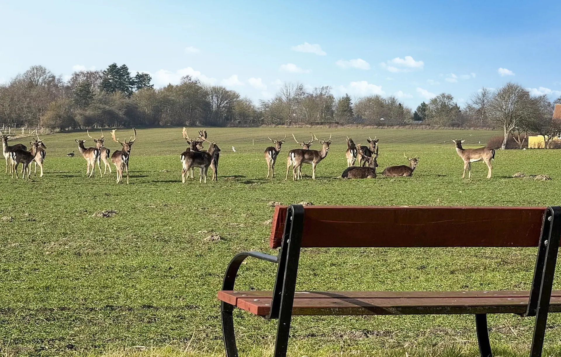 Öffnen Sie beim ersten Sonnenstrahl die Türen zur Terrasse und lassen Sie den Blick über das Piledybet schweifen, ein Gebiet mit Wiesen und See, das direkt an den Garten grenzt. Hier können Sie zahlreiche Vogelarten, Hasen und Damhirsche beobachten. Vom Grundstück aus haben Sie auch Zugang zu einem Badesteg. Genießen Sie am Abend den Sonnenuntergang von der eigenen Bank oder von der Terrasse aus.