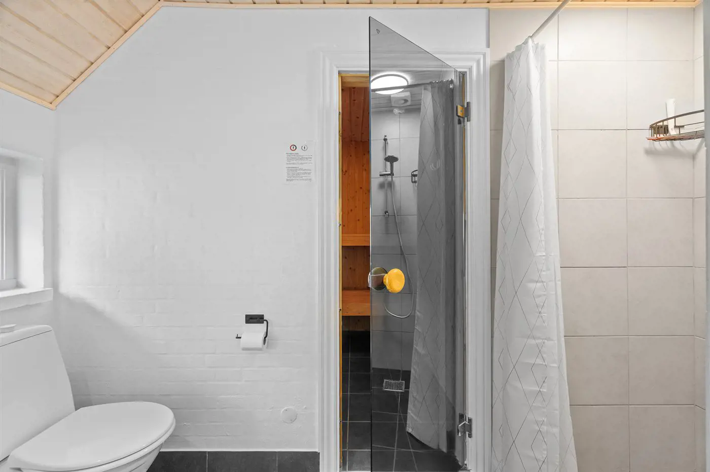 Es gibt 2 Badezimmer mit Duschnische und 2 Toiletten. Fußbodenheizung in 1 Badezimmer. Es steht eine Sauna zur Verfügung in der Sie sich so richtig entspannen können.