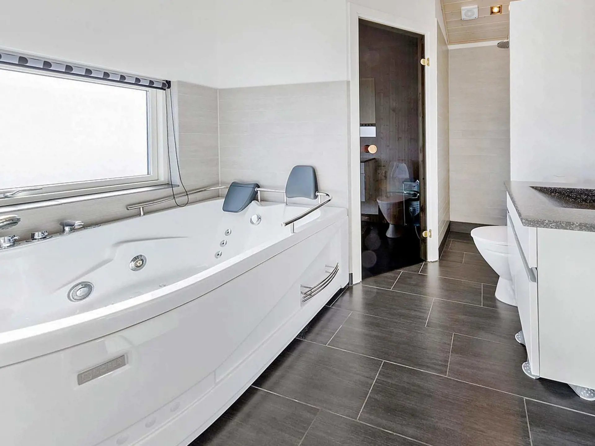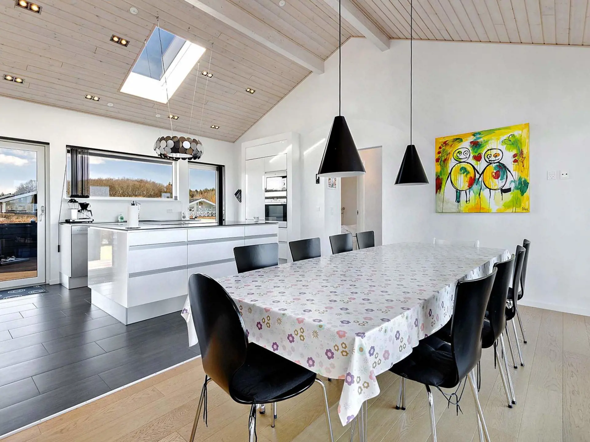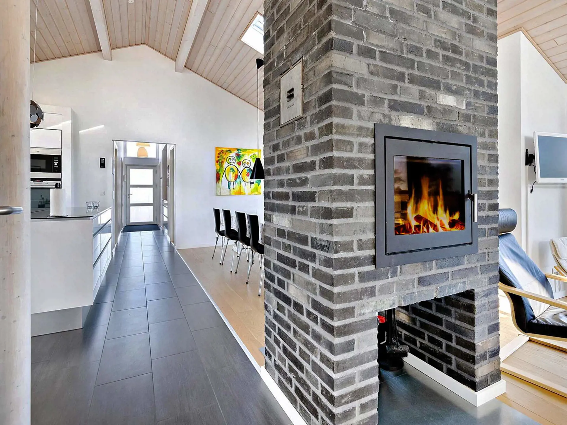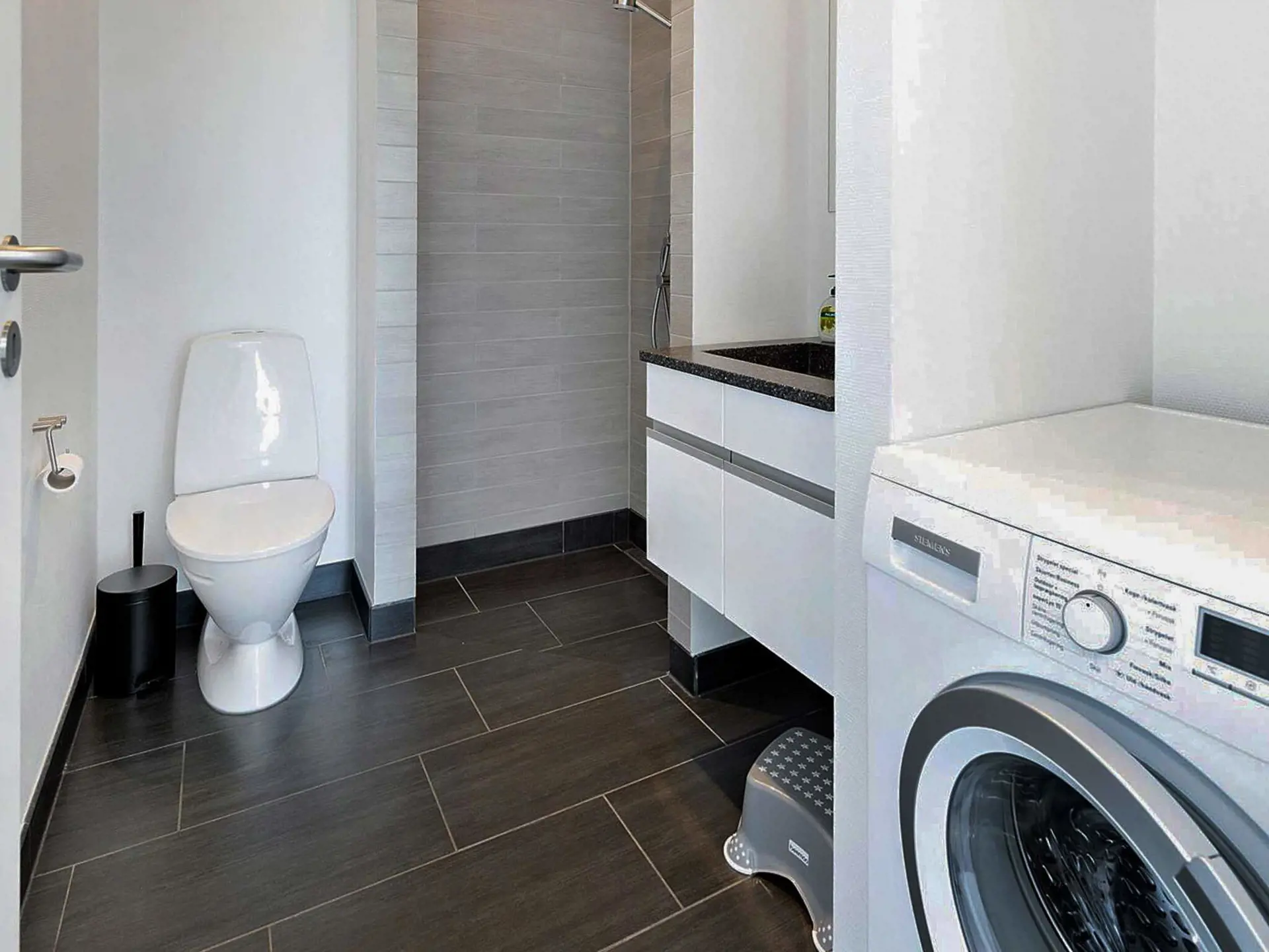 Vom Eingangsbereich aus gelangt man in ein Badezimmer mit Whirlpool und Sauna sowie in ein Schlafzimmer. Von hier aus gelangt man in den großzügigen, offenen Küchen- und Wohnbereich, der ideal für Familienfeiern ist. Der Raum verfügt über eine offene Decke bis zum First, Oberlichter, eine großzügige Küche mit Kochinsel und Zugang zu den nach Osten und Westen ausgerichteten Terrassen. Ein großer Dachboden (Hems) bietet zusätzlichen Platz. Die Fußbodenheizung im gesamten Haus sorgt ganzjährig für Komfort. Das Haus verfügt über vier gut eingerichtete Schlafzimmer und zwei Badezimmer, eines davon mit Waschmaschine und Trockner. Zur Unterhaltung gehört eine PlayStation 2 mit verschiedenen Spielen. Eine moderne Luft-Luft-Wärmepumpe mit Kühlfunktion sorgt für ein angenehmes Raumklima.