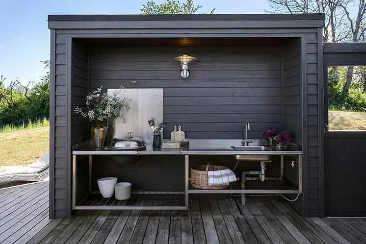 Draußen gibt es eine schöne, große, abgeschirmte Terrasse mit Gartenmöbeln und Sonnenliegen. Hier gibt es auch eine Außenküche, wenn Sie sich in die Zubereitung Ihrer Speisen im Freien stürzen möchten.