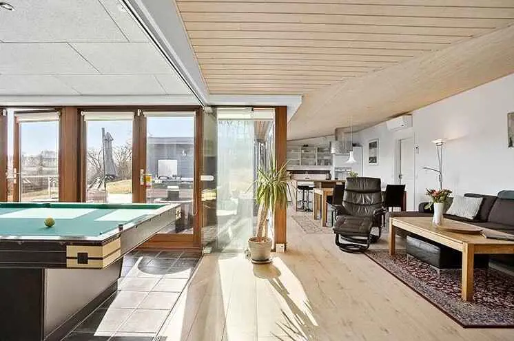 Hier gibt es einen Billardtisch, sodass Sie in der Familie vielleicht gegenseitig zu einem lustigen Spiel herausfordern können. Fernseher mit dänischen Sendern und kostenlosem Internet.