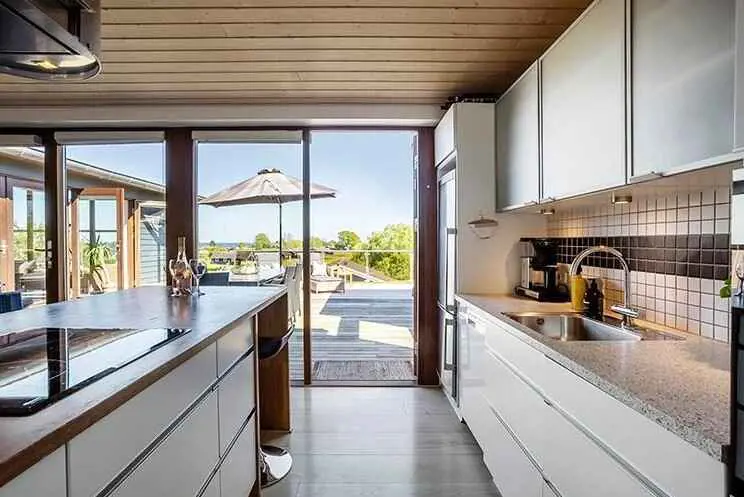 Das Haus ist mit einem schönen, großen Eckwohnzimmer in Verbindung mit der schönen, offenen Küche ausgestattet, die selbstverständlich sowohl über einen Geschirrspüler als auch über eine Mikrowelle verfügt. Von der Küche aus haben Sie Zugang zur Terrasse.