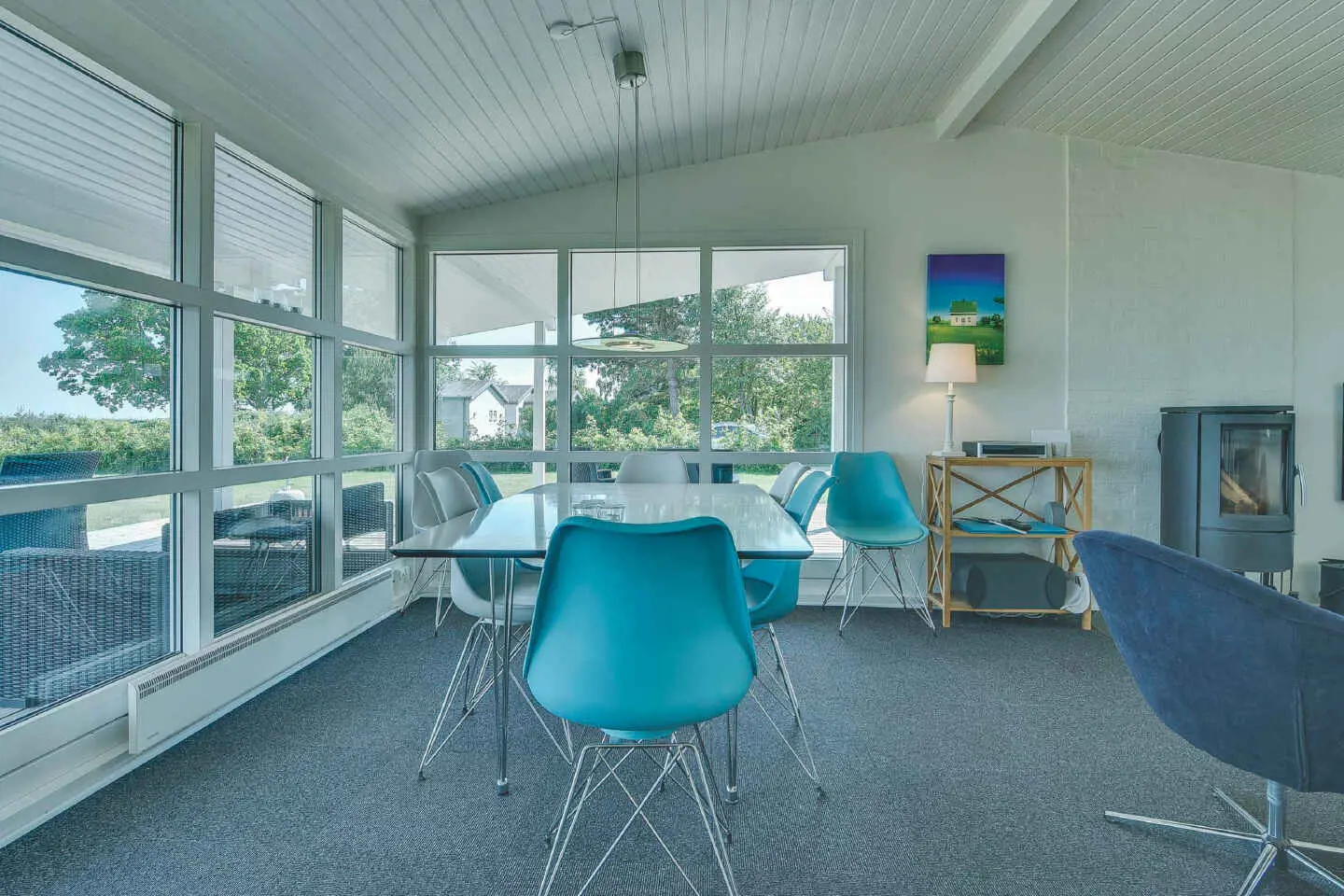 Das Haus ist sehr gut eingerichtet. Vom Küchenbereich aus haben Sie direkten Zugang zur Terrasse. Im Wohnzimmer gibt es große Fensterfronten mit wunderschönem Lichteinfall und einem fantastischen Blick über die Umgebung.