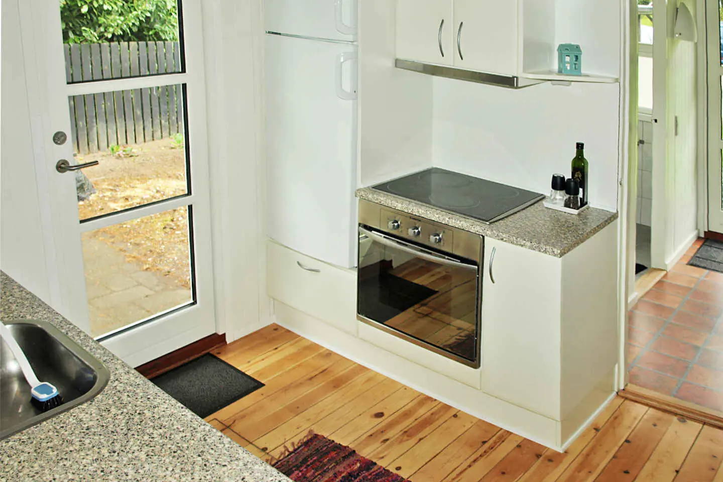 Es gibt eine kleine, überdachte Terrasse mit Gartenmöbeln und einem Grill, so dass Sie leckeres Essen zubereiten und bei gutem Wetter draußen sitzen können.
