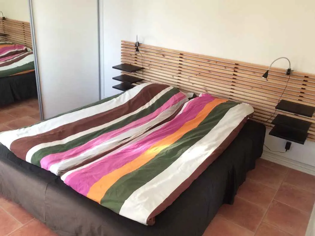 Es gibt Platz für 4 Personen, und ein Kinderbett sowie ein Hochstuhl sind vorhanden.