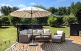 Auch Ihr gepflegter Garten lädt zum stundenlangen Verweilen ein. Starten Sie mit einem Frühstück auf der Terrasse und gönnen Sie Ihren Kindern Spaß beim Spielen auf der weitläufigen Rasenfläche. Plaudern Sie bei einem erfrischenden Getränk in der Lounge und nutzen Sie die Feuerstelle, um unter dem Sternenhimmel Stockbrot zu backen.