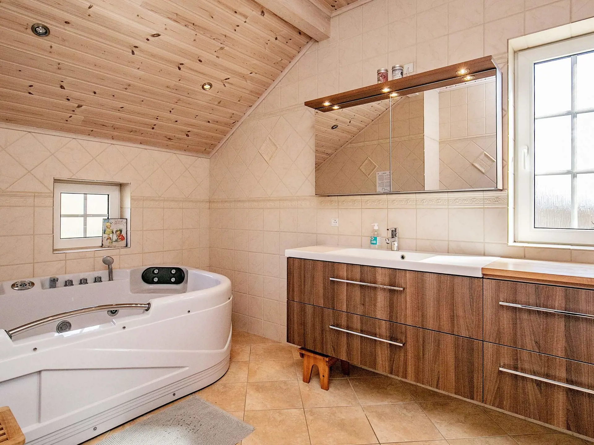 Innen heller Küchen- und komfortabel möblierter Wohnbereich mit WLAN und Chromecast zum Streamen eigener Anbieter. Stromsparende Wärmepumpe im Haus zur Reduzierung der Nebenkosten. Die Küche ist zeitgemäß ausgestattet mit Induktionsherd, separatem Backofen mit Grillfunktion, Mikrowelle und Geschirrspüler. Zudem drei geräumige Schlafzimmer im Haus, Bad mit Dusche/WC, Whirlpool und angenehmer Fußbodenheizung sowie zweites Bad mit Dusche/WC. Die Schlafzimmer haben elektrische Heizkörper. Genießen Sie nach einem Spaziergang an der frischen Luft ein sprudelndes, warmes Bad im Whirlpool - eine Wohltat für Körper und Geist!